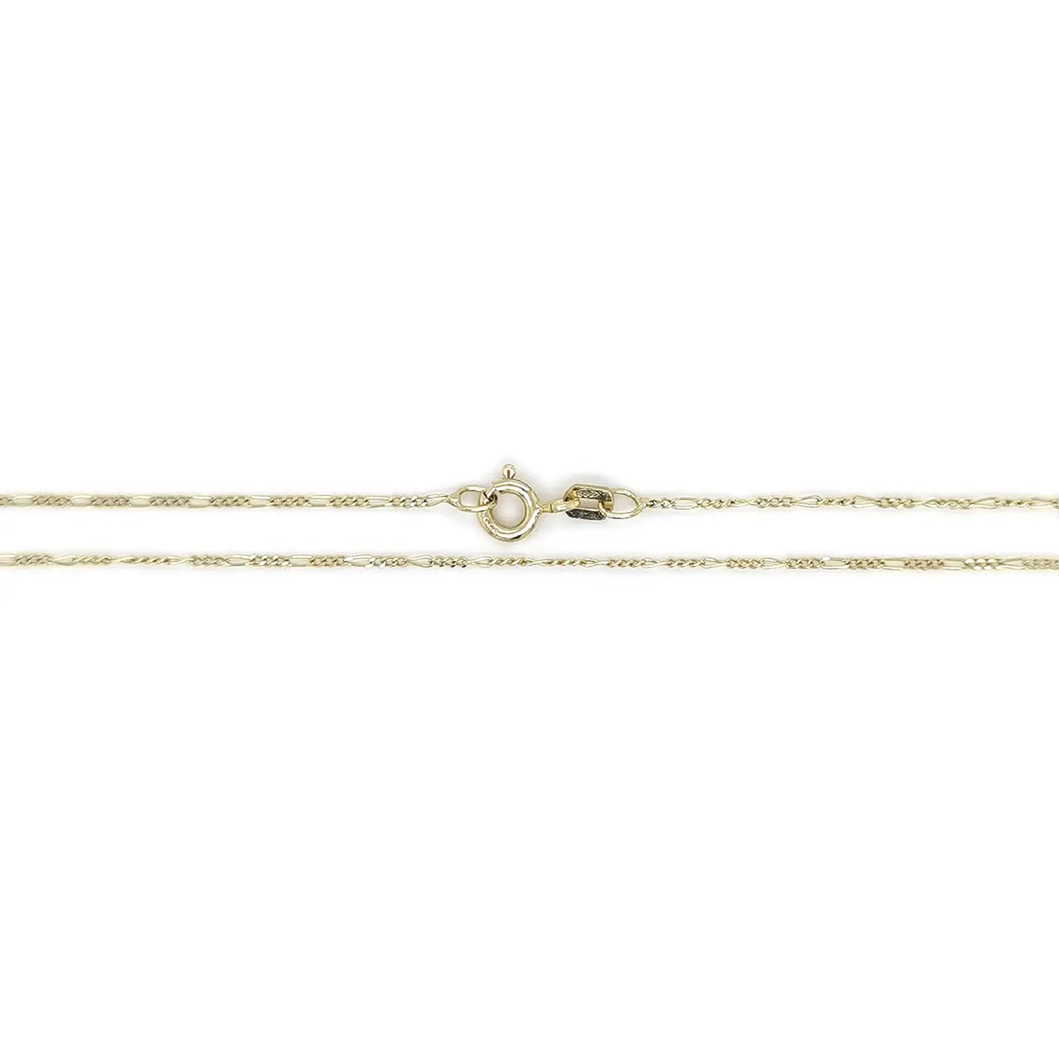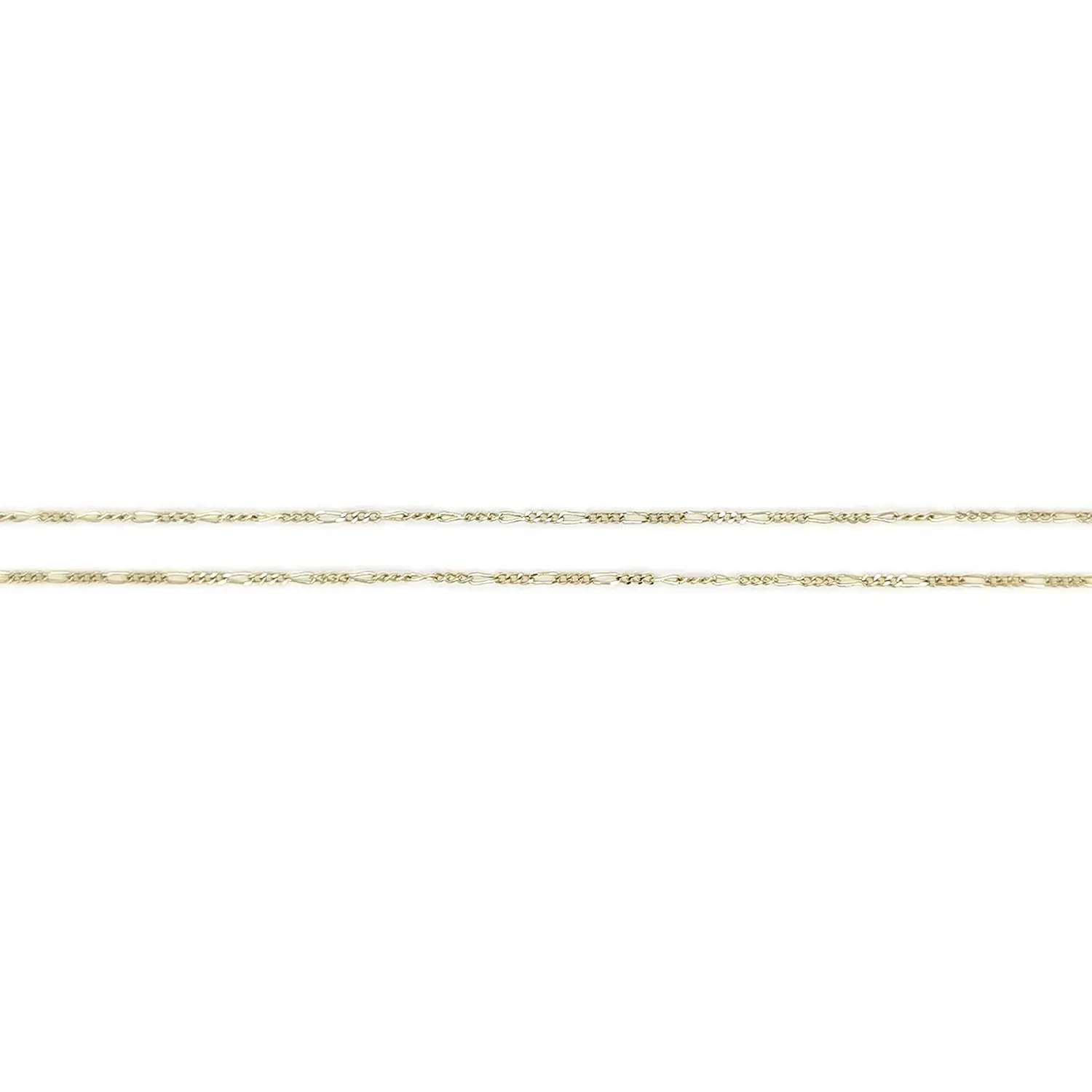 Dây chuyền vàng với kiểu dáng Figaro cổ điển nổi bật nhờ sự xen kẽ giữa các mắt ngắn và dài, mang lại vẻ đẹp thanh lịch và vượt thời gian. Thiết kế mảnh giúp dễ dàng đeo hằng ngày hoặc kết hợp cùng mặt dây chuyền.