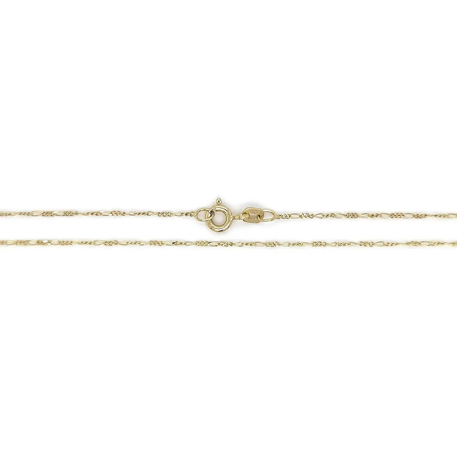 Dây chuyền vàng với kiểu Figaro nổi bật nhờ thiết kế vượt thời gian, kết hợp hài hòa giữa các mắt xích ngắn và dài theo nhịp điệu đều đặn. Phong cách cổ điển nhưng vẫn hiện đại giúp dây chuyền phù hợp cho cả việc đeo hằng ngày lẫn những dịp trang trọng. Có thể đeo riêng hoặc kết hợp cùng mặt dây chuyền.