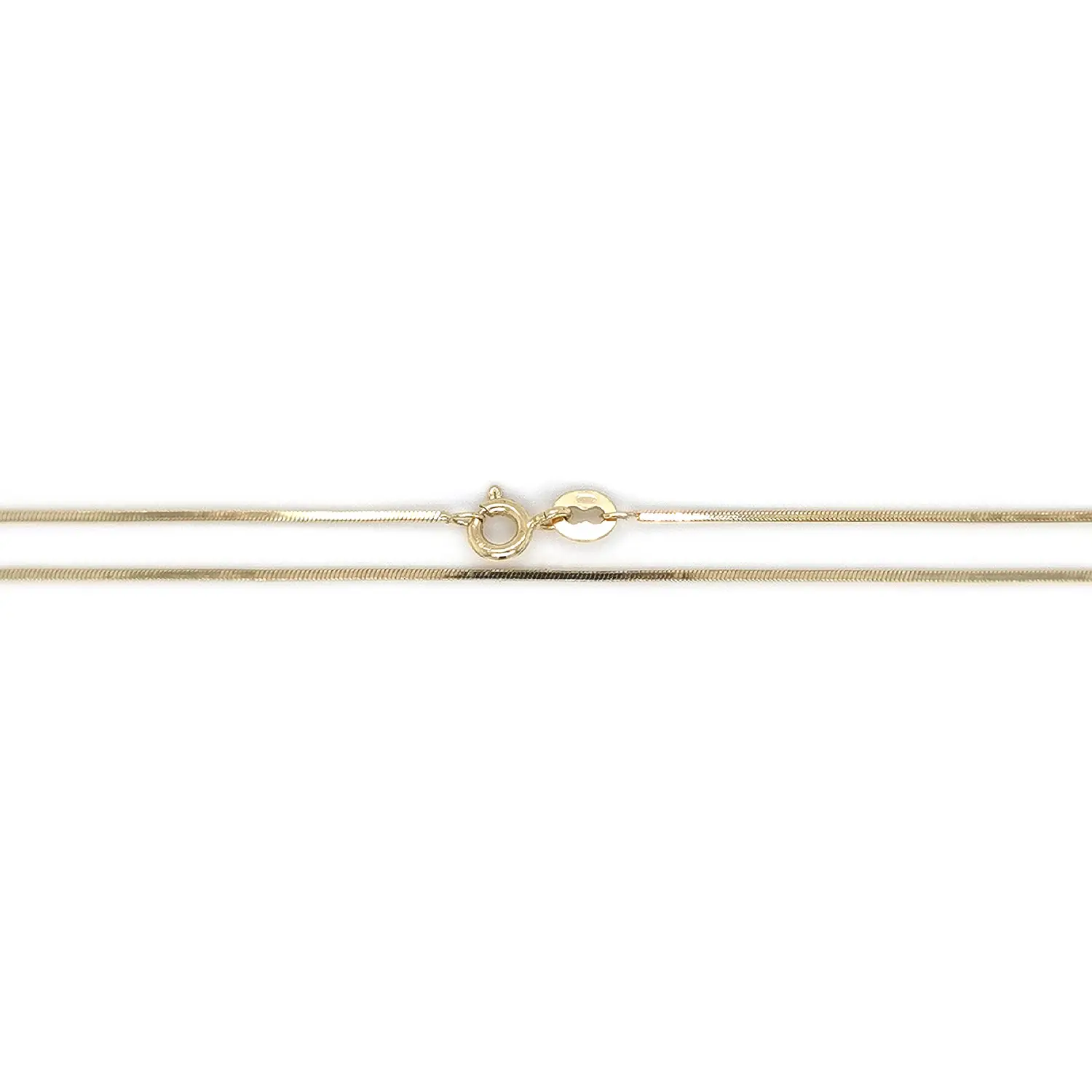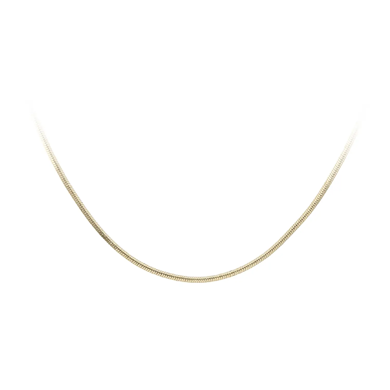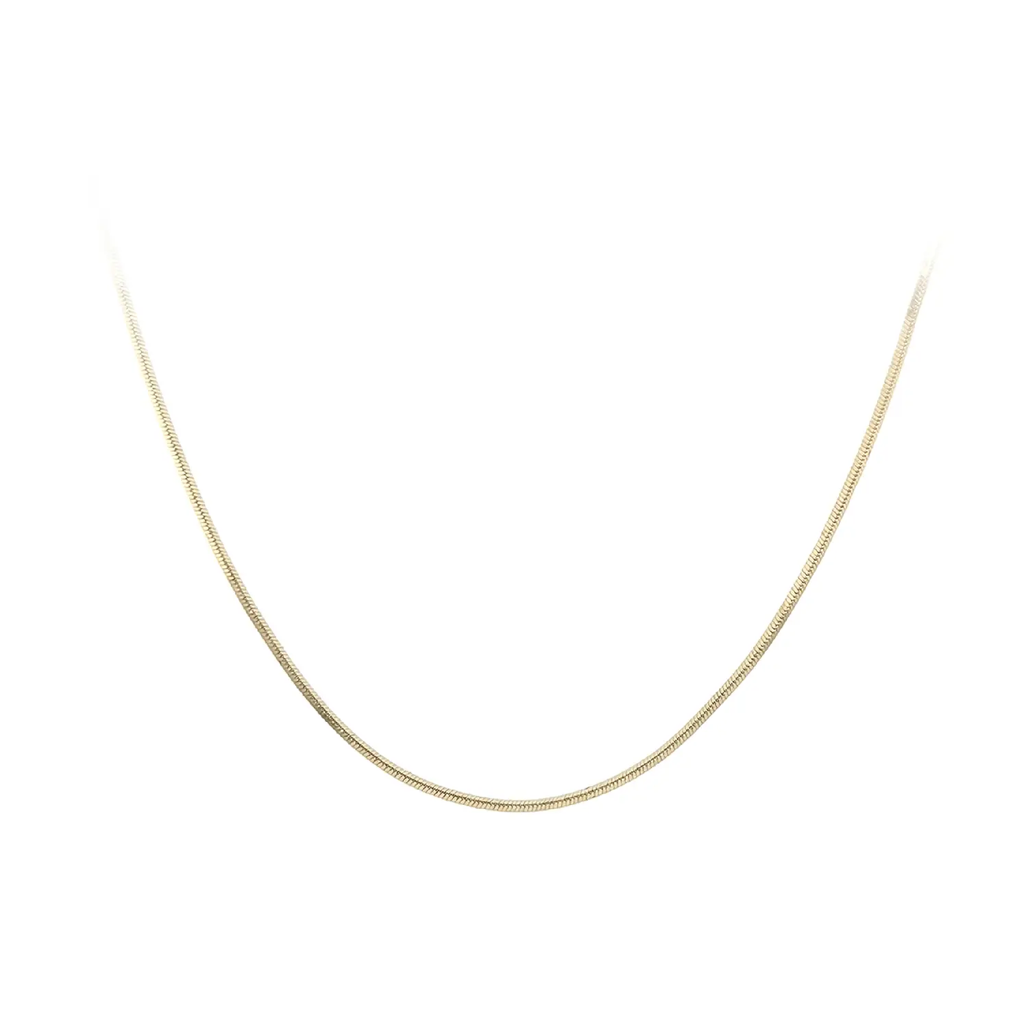 Dây chuyền vàng kiểu mắt rắn thanh mảnh với bề mặt mịn, cấu trúc chắc chắn và độ bóng sang trọng. Thiết kế linh hoạt giúp dây ôm sát cổ một cách tự nhiên và tinh tế.