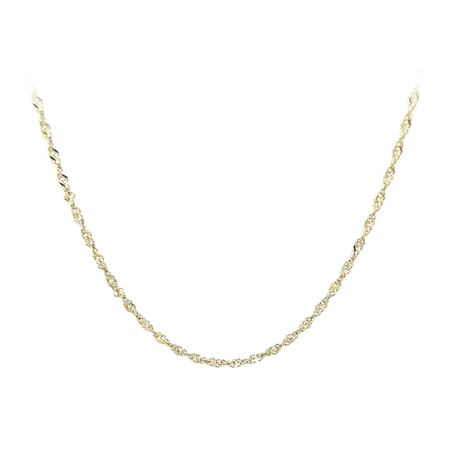Dây chuyền vàng kiểu Singapore sở hữu thiết kế xoắn tinh tế, tạo nên vẻ ngoài thanh lịch và khả năng phản chiếu ánh sáng đẹp mắt. Với bề rộng 1,50 mm, sợi dây mang lại cảm giác nhẹ nhàng nhưng vẫn sang trọng.
