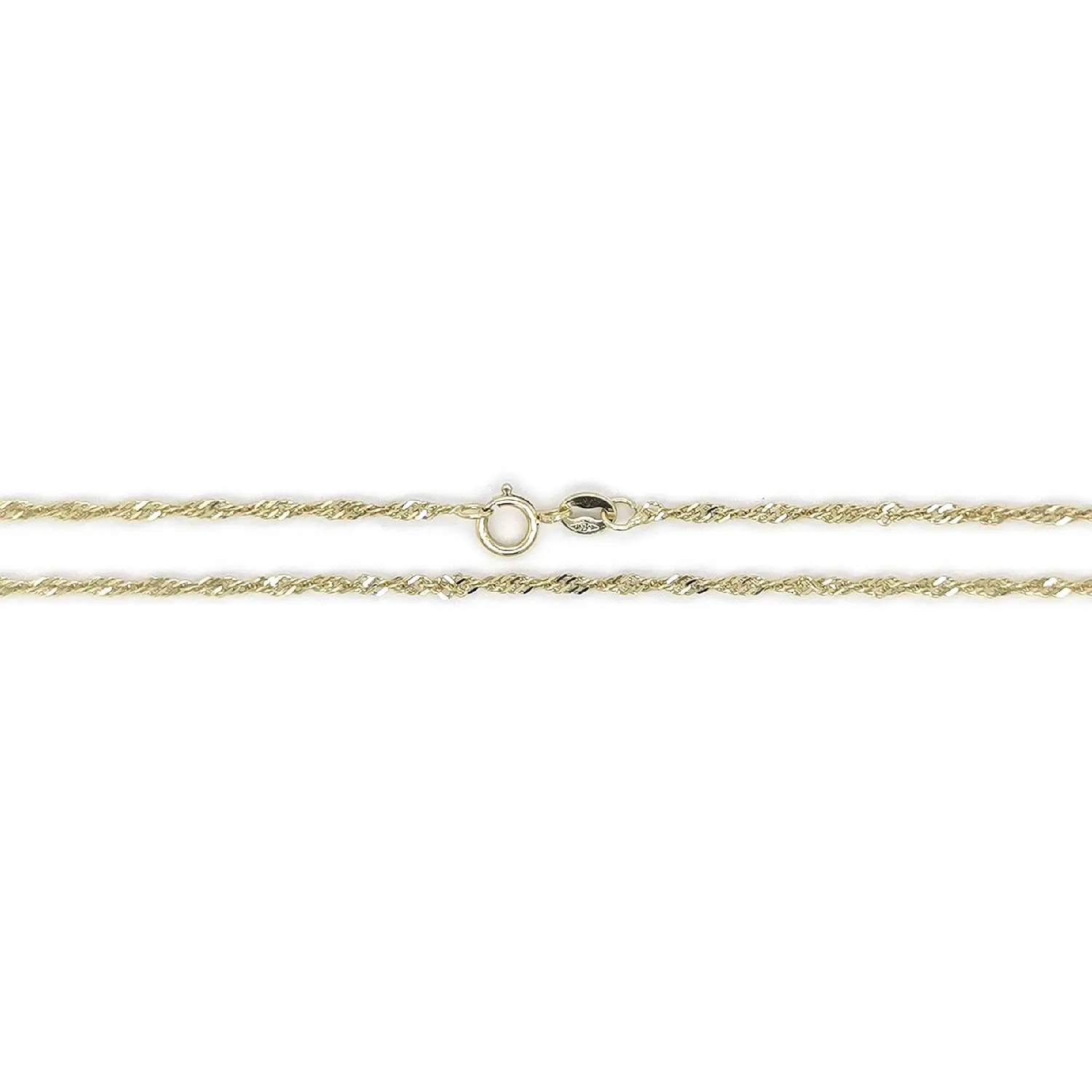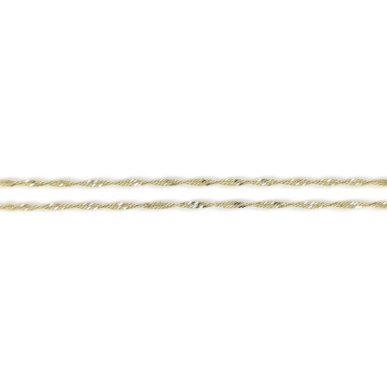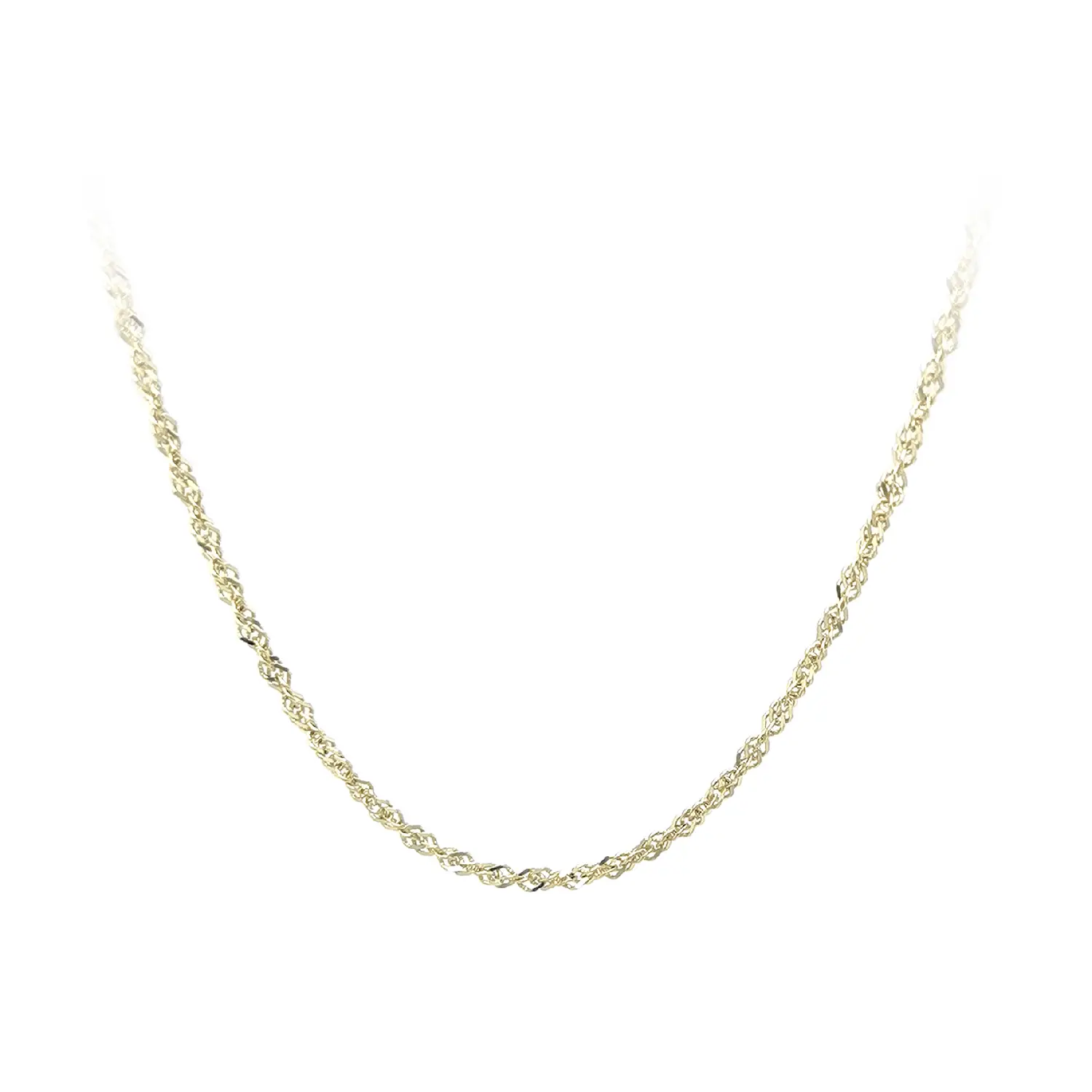 Dây chuyền vàng kiểu Singapore nổi bật với cấu trúc xoắn tinh tế, tạo hiệu ứng ánh sáng sang trọng và mang đến vẻ đẹp thanh lịch nhưng vẫn đầy cuốn hút. Các mắt xích được chế tác tỉ mỉ, tạo cảm giác nhẹ nhàng, trong khi bản rộng 1,70 mm giúp sợi dây trông chắc chắn và sang trọng hơn.