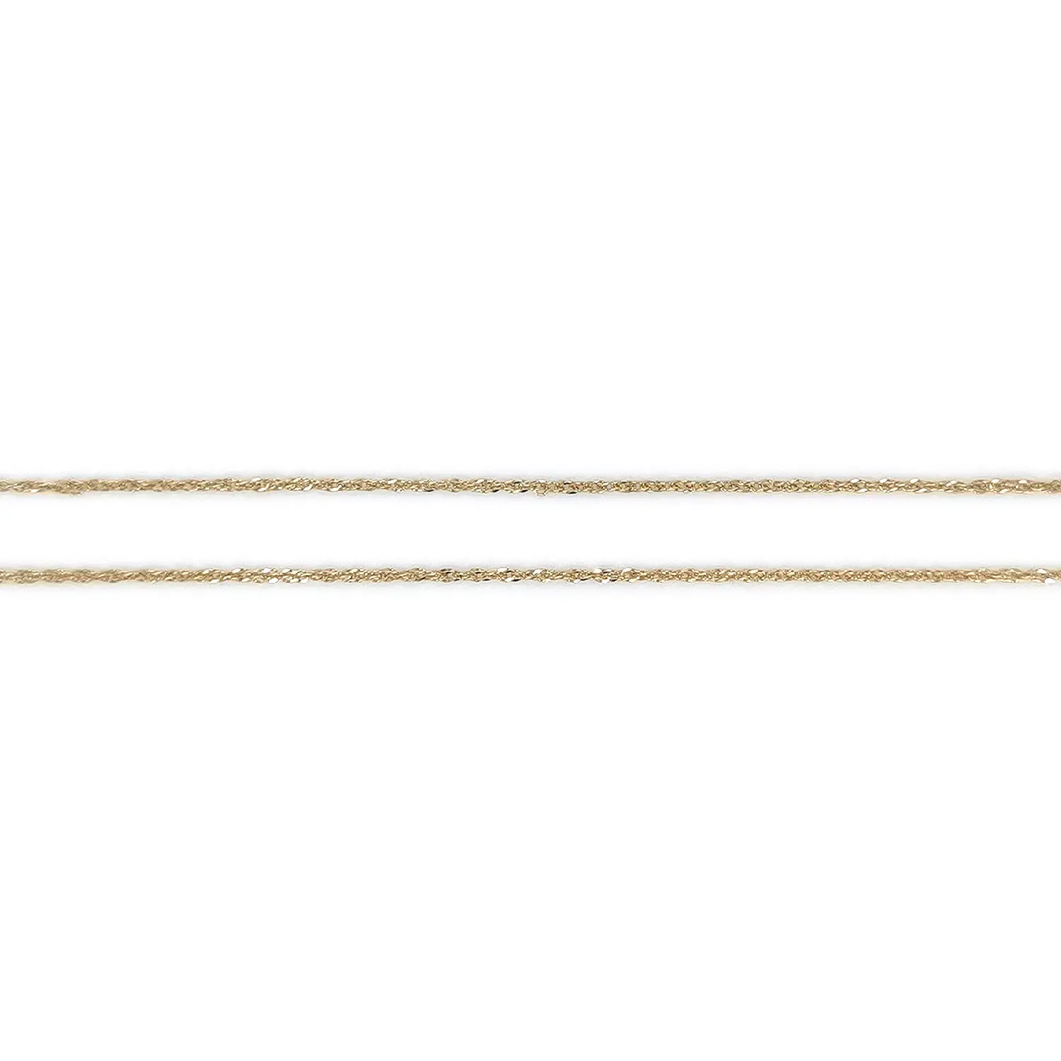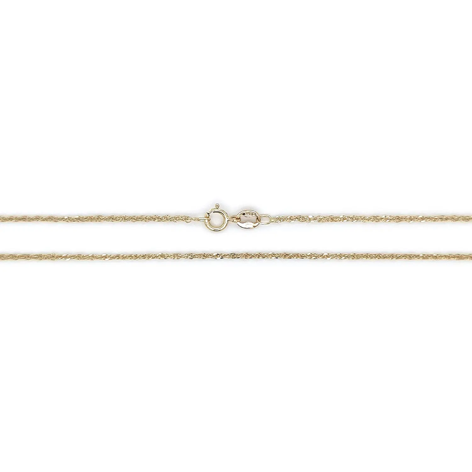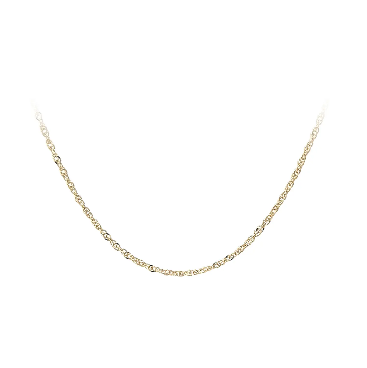 Dây chuyền vàng kiểu Singapore nổi bật với thiết kế xoắn tinh tế, tạo hiệu ứng ánh sáng sang trọng và mang lại vẻ ngoài nhẹ nhàng, thanh thoát. Các mắt xích được chế tác tỉ mỉ, trông thanh lịch và tinh xảo, trong khi bản rộng 1,50 mm giữ được nét tinh tế phù hợp cho việc đeo hằng ngày.