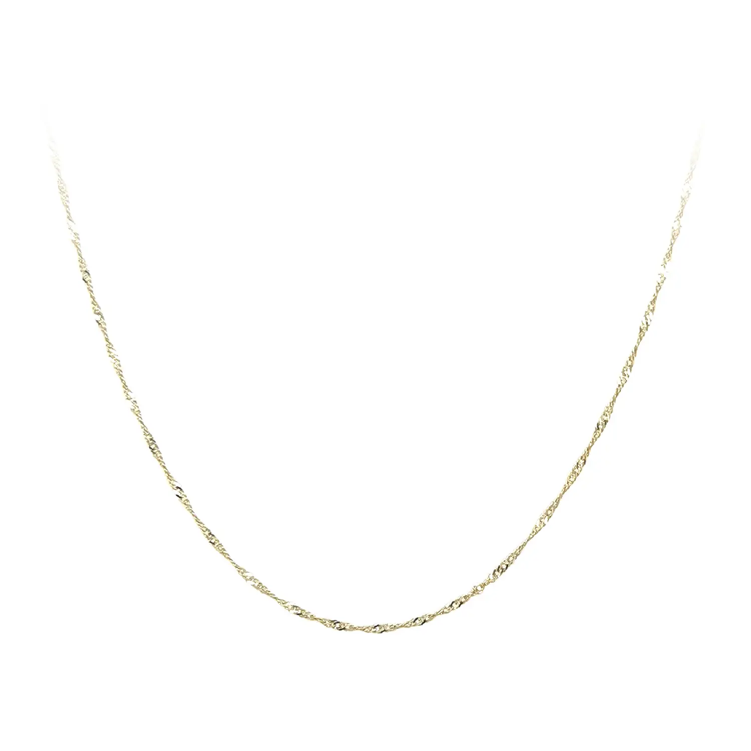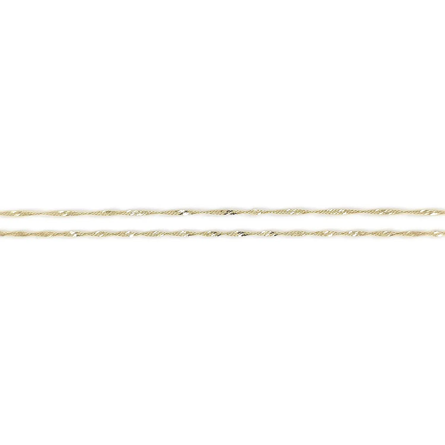 Dây chuyền Singapore nổi bật với kiểu liên kết xoắn nhẹ, tạo nên đường nét uyển chuyển và ánh sáng lấp lánh khi chuyển động. Thiết kế đặc trưng này mang lại vẻ đẹp thanh lịch, mềm mại và đầy nữ tính. Độ rộng 1,20 mm giúp dây trông tinh tế nhưng vẫn đủ nổi bật.
