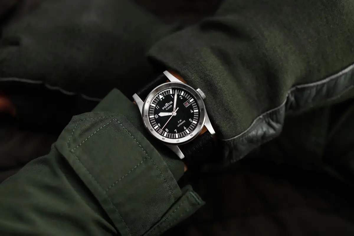 Bên trong là bộ máy tự động Thụy Sĩ UW-30 với dự trữ năng lượng khoảng 38 giờ, hoạt động ổn định và chính xác. Dây da Aviator với đường chỉ khâu nổi bật gợi nhớ đến phong cách phi công cổ điển, đồng thời mang lại cảm giác thoải mái khi đeo lâu. Fortis Flieger F-39 Black là sự kết hợp hoàn hảo giữa truyền thống và hiện đại – biểu tượng của tự do, độ chính xác và phong cách vượt thời gian.