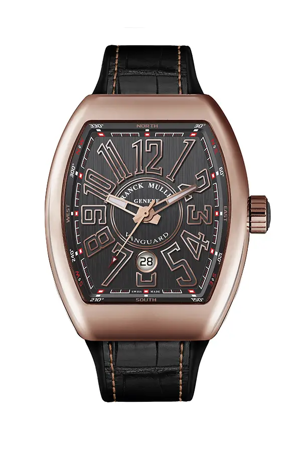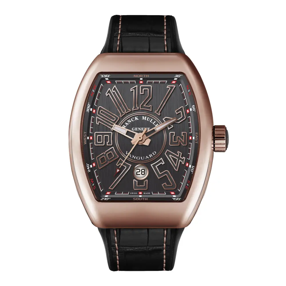 Vanguard là bộ sưu tập hiện đại và năng động của Franck Muller, kết hợp giữa phong cách thể thao và thiết kế tiên phong. Bộ sưu tập này nổi bật với dáng tonneau (hình thùng) độc đáo, đường nét mềm mại và vỏ đồng hồ chắc chắn, mang vẻ ngoài mạnh mẽ nhưng vẫn thanh lịch và ergonomics.