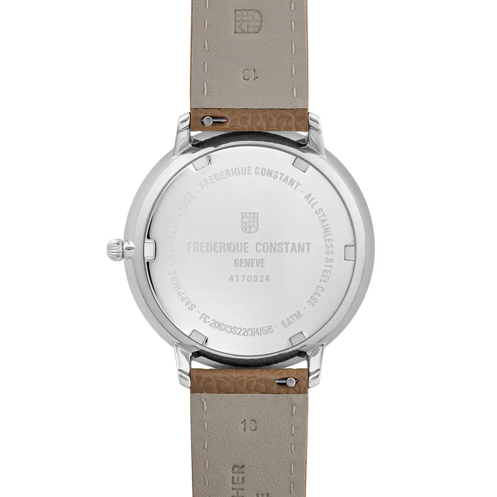 Bên trong là bộ máy quartz Thụy Sĩ FC-206, đảm bảo độ chính xác và ổn định lâu dài. Dây da mang lại sự thoải mái khi đeo, cùng với khả năng chống nước 5 ATM phù hợp cho sinh hoạt hằng ngày. Mẫu FC-206RN3S6 là lựa chọn lý tưởng cho những ai yêu thích đồng hồ cổ điển với điểm nhấn tinh tế.
