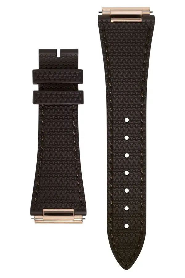 Dây đồng hồ da nâu với khóa truyền thống mang lại cảm giác thoải mái khi đeo và hài hòa với tông màu vàng hồng. Với khả năng chống nước 5 ATM (50 m), mẫu đồng hồ vẫn giữ được tính thực dụng trong sử dụng hàng ngày.