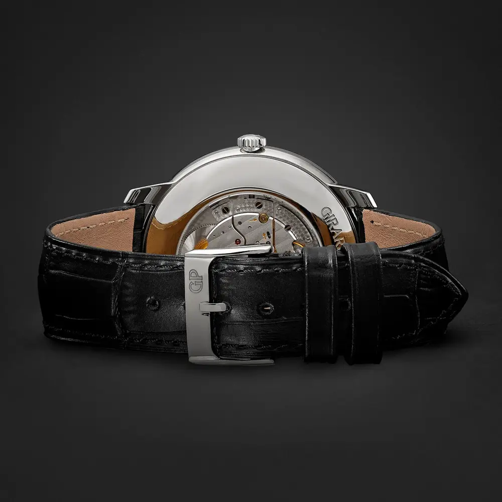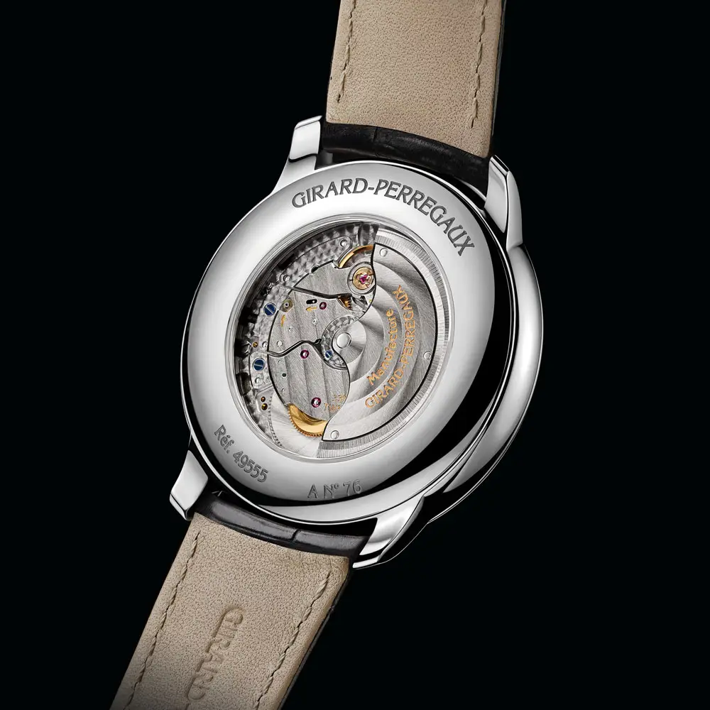 Thiết kế của các mẫu đồng hồ tinh tế và sang trọng - vỏ tròn mỏng, kính sapphire cong nhẹ, các chỉ số mảnh mai và kim đồng hồ thanh lịch tạo nên một thẩm mỹ cân đối và tinh tế. Ở trung tâm của đồng hồ là bộ máy sản xuất riêng của Girard-Perregaux, thường đi kèm với các chức năng phức tạp như lịch ngày, pha trăng hoặc lịch năm.