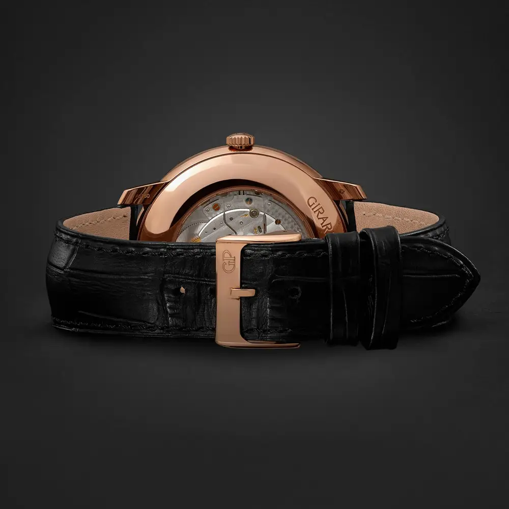 Thiết kế của các mẫu đồng hồ tinh tế và sang trọng - vỏ tròn mỏng, kính sapphire cong nhẹ, các chỉ số mảnh mai và kim đồng hồ thanh lịch tạo nên một thẩm mỹ cân đối và tinh tế. Ở trung tâm của đồng hồ là bộ máy sản xuất riêng của Girard-Perregaux, thường đi kèm với các chức năng phức tạp như lịch ngày, pha trăng hoặc lịch năm.
