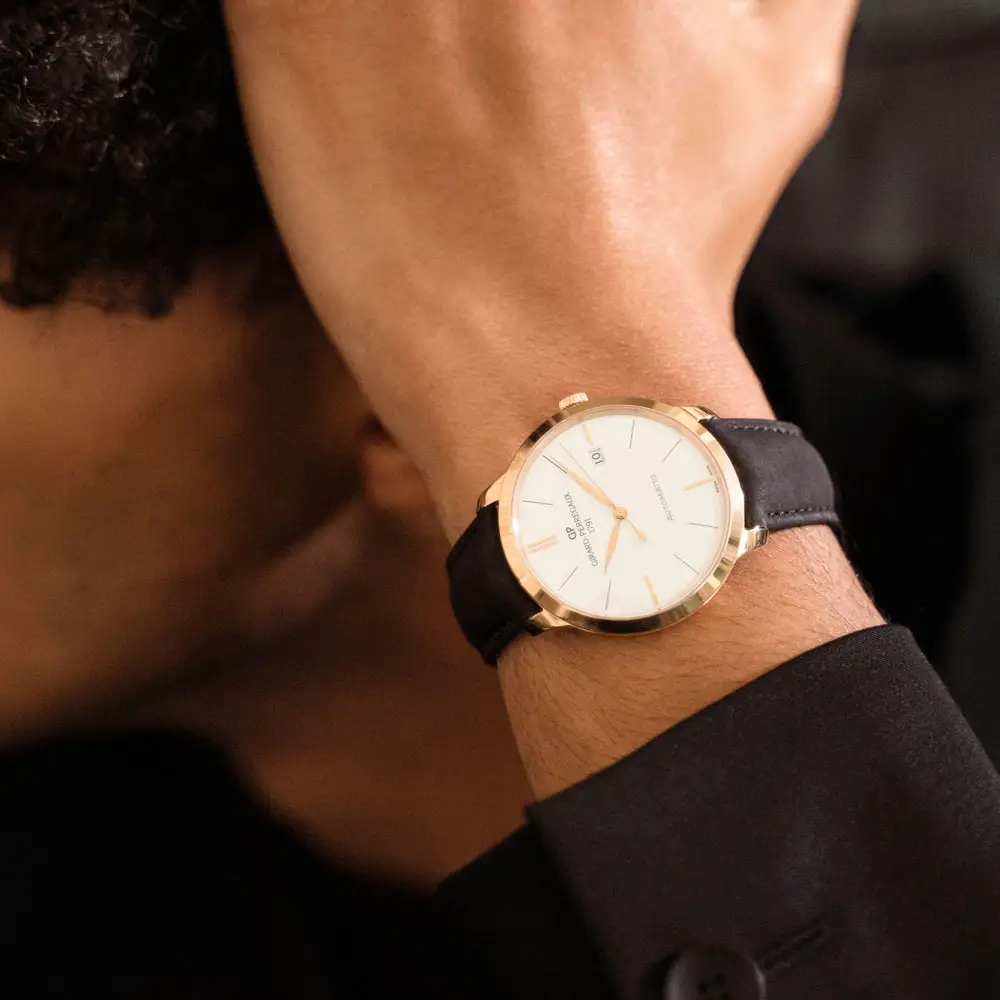 Đồng hồ Girard-Perregaux 1966 là hiện thân của phong cách cổ điển thanh lịch và tay nghề chế tác Thụy Sĩ đỉnh cao. Vỏ tròn đường kính 40 mm được chế tác từ vàng hồng 18K sang trọng, cùng với vành bezel cùng chất liệu, mang đến vẻ ngoài tinh tế và vượt thời gian.