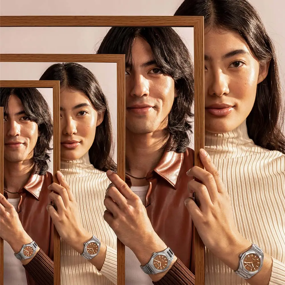 Bên dưới mặt kính sapphire chống phản chiếu, mặt số nâu có cửa sổ hiển thị ngày mang lại khả năng đọc dễ dàng và vẻ cân đối trang nhã. Khả năng chống nước 100 m (10 bar) giúp đồng hồ phù hợp cho cả sử dụng hàng ngày lẫn các hoạt động nhẹ.