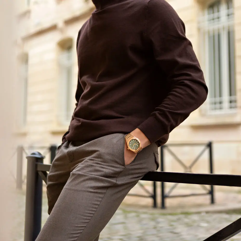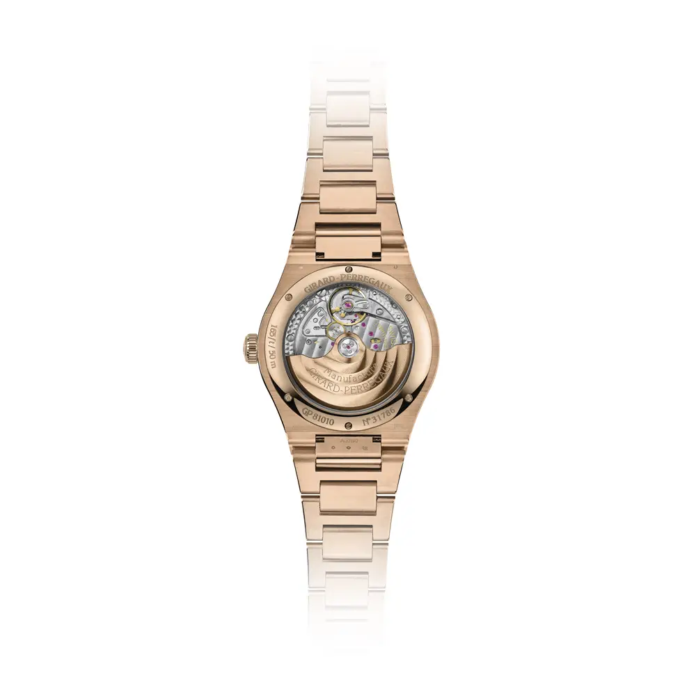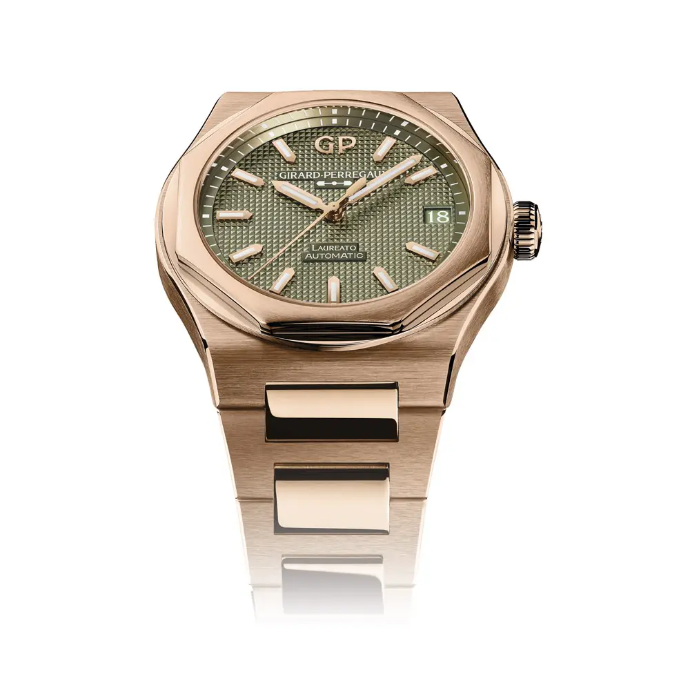 Đồng hồ Girard-Perregaux Laureato 42mm nổi bật với thiết kế tinh tế và tay nghề bậc thầy, chinh phục những ai yêu thích sự sang trọng. Vỏ tròn đường kính 42 mm được làm từ vàng hồng 18K độc quyền, cùng với vành bezel thanh lịch và dây đeo vàng hồng tích hợp, hoàn thiện vẻ ngoài hài hòa và tinh xảo.