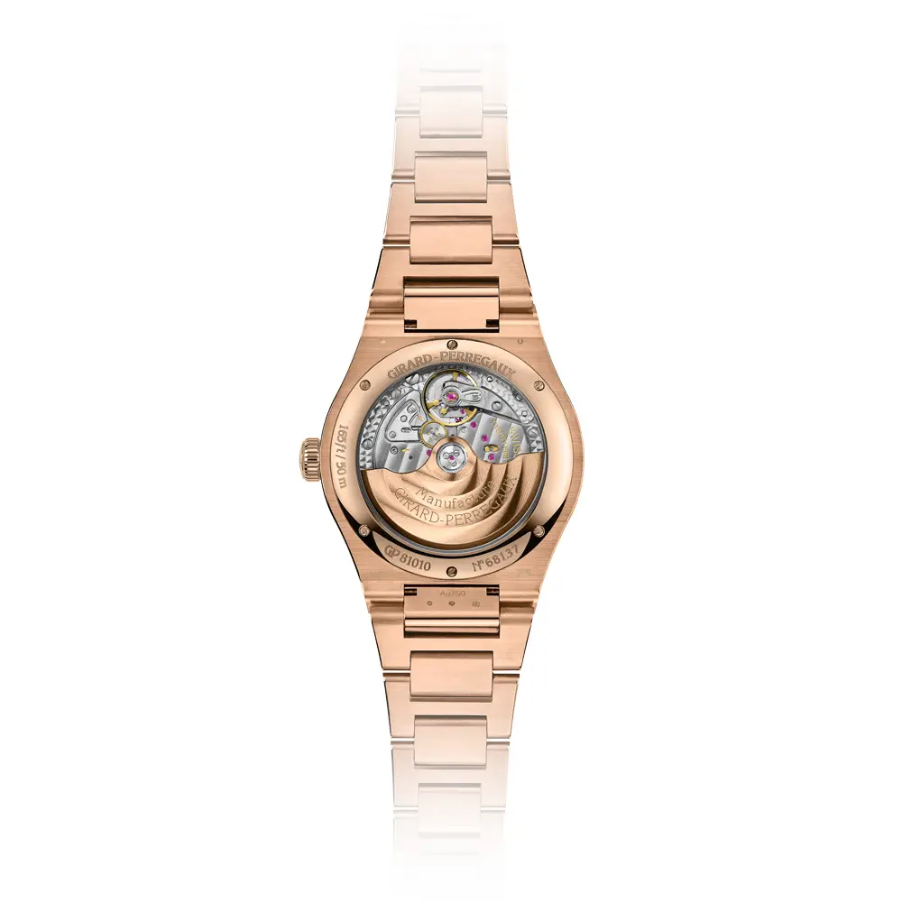 Đồng hồ Girard-Perregaux Laureato 42mm là biểu tượng hoàn hảo của sự sang trọng, thanh lịch và tay nghề Thụy Sĩ chính xác. Vỏ tròn đường kính 42 mm được chế tác từ vàng hồng 18K độc quyền, cùng với vành bezel và dây đeo vàng hồng sang trọng, tạo nên một vẻ ngoài hài hòa và tinh tế.