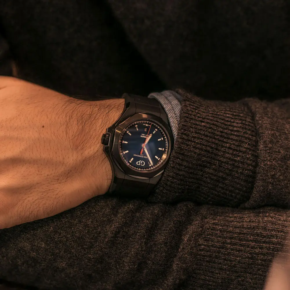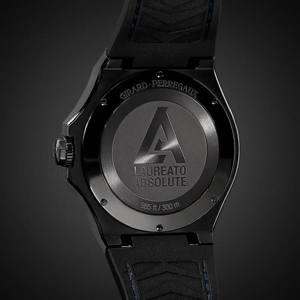 Đồng hồ Girard-Perregaux Laureato Absolute là mẫu thể thao hiện đại, kết hợp hoàn hảo giữa thiết kế chắc chắn, vật liệu cao cấp và độ chính xác của chế tác đồng hồ Thụy Sĩ. Vỏ tròn nổi bật với đường kính 44 mm được làm từ titan nhẹ và bền bỉ, mang lại sự thoải mái ngay cả khi kích thước lớn. Vành bezel titan càng nhấn mạnh phong cách thể thao của mẫu này.