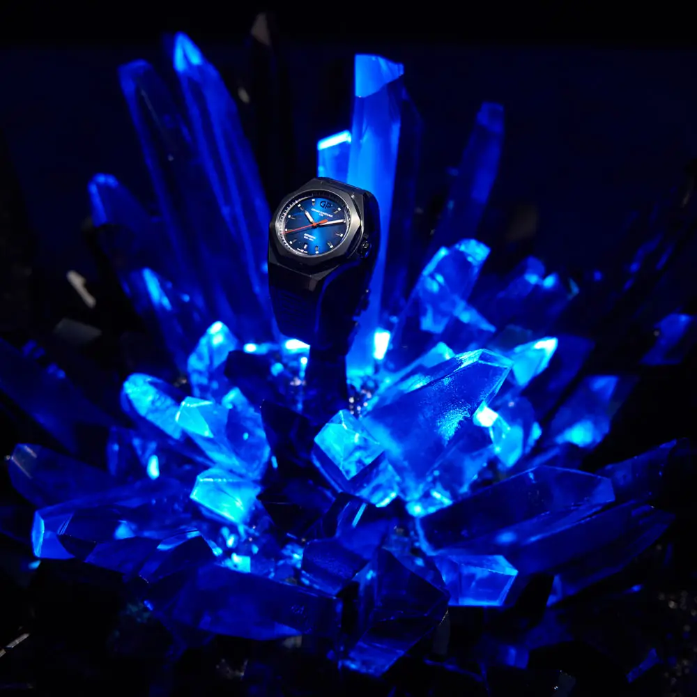 Bên dưới mặt kính sapphire là mặt số analog màu xanh nổi bật, dễ đọc và có thêm lịch ngày tiện dụng, lý tưởng cho sử dụng hàng ngày. Bên trong là bộ máy cơ tự động đáng tin cậy, đảm bảo độ chính xác và độ bền lâu dài.