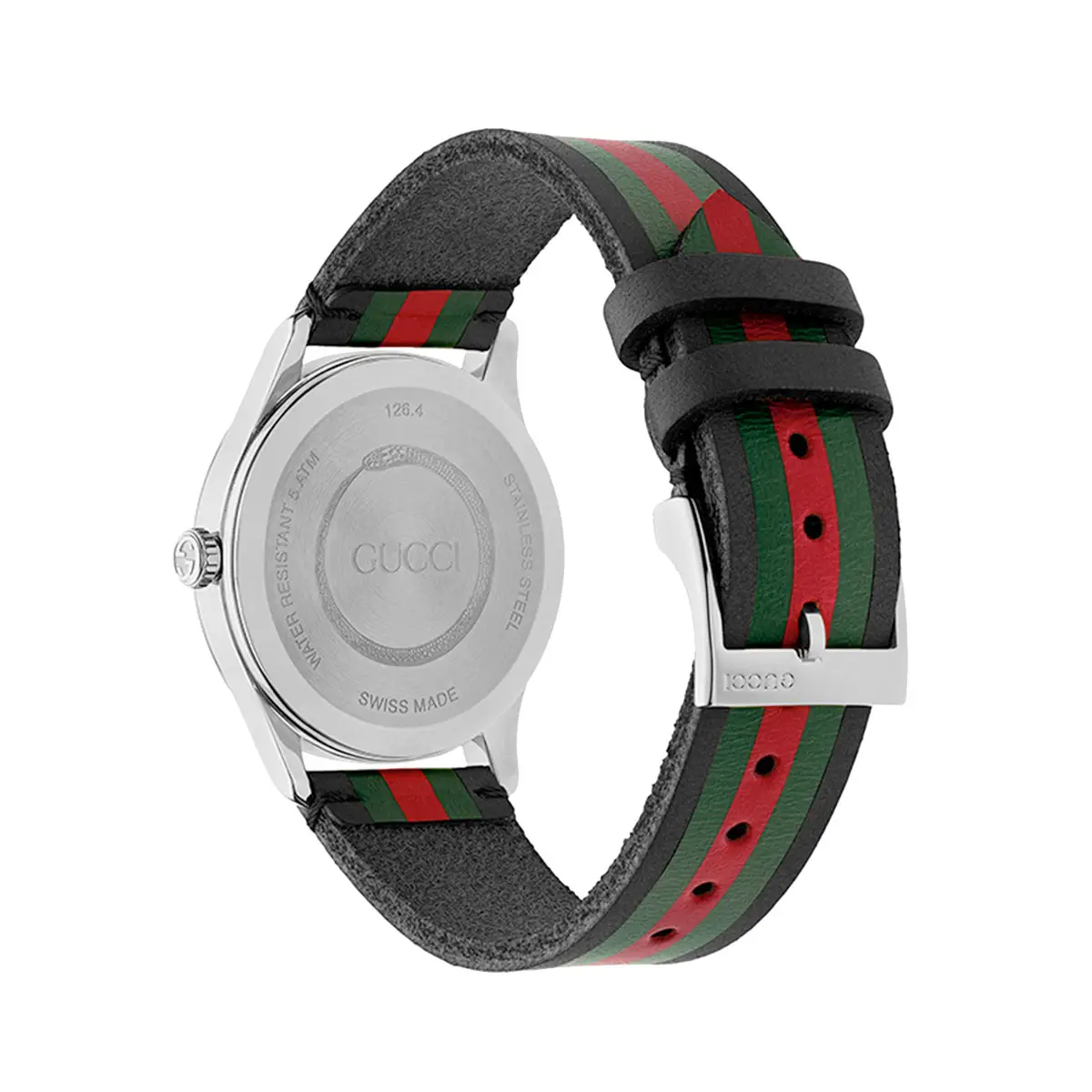 Độ an tâm đến từ máy quartz, trong khi kháng nước 5 ATM / 50 m đủ cho tiếp xúc nước thường nhật. Dây da hai tông kèm khóa kim tăng sự thoải mái và phong cách. Gucci G-Timeless YA1264079 là lựa chọn thời trang, đa dụng và đáng tin cậy với vẻ thanh lịch hiện đại.