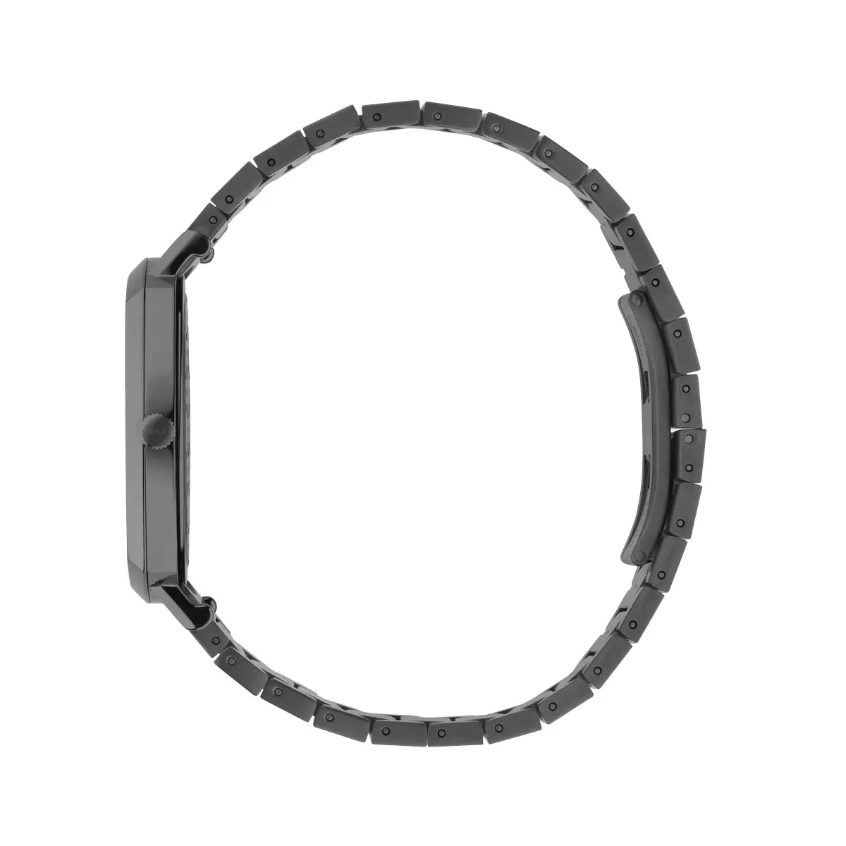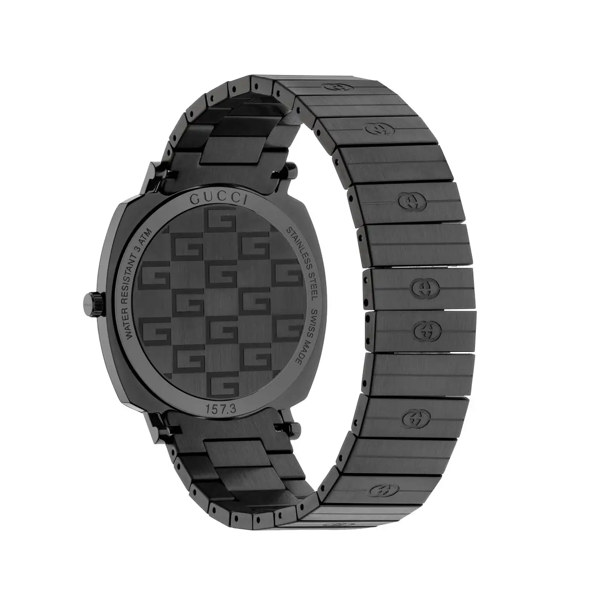 Gucci Grip YA157429 kết hợp chủ nghĩa tối giản hiện đại với DNA biểu tượng của hãng. Mẫu máy dùng vỏ vuông 38 mm bằng thép không gỉ / PVD xám, kính sapphire, cùng vành bezel thép / PVD xám. Dây thép phủ PVD xám (tông xám) kèm khóa gập tạo diện mạo gọn gàng, thanh lịch trên cổ tay. Mặt số analog xám tối giản có lịch ngày tiện dụng cho nhu cầu hằng ngày.