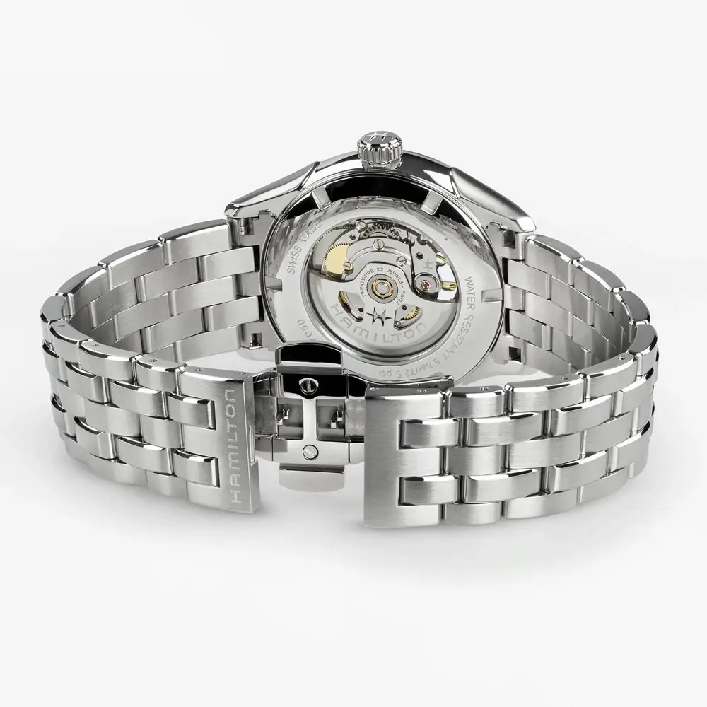 Bộ sưu tập mang đến đa dạng mẫu mã - từ những phiên bản đơn giản với ba kim, đến đồng hồ bấm giờ, cho đến các mẫu có chức năng phức tạp như dự trữ năng lượng, mở tim hoặc điều chỉnh. Đồng hồ Jazzmaster có sẵn trong nhiều kích thước và chất liệu, với dây da hoặc dây thép, và luôn được trang bị bộ máy cơ học Thụy Sĩ đáng tin cậy.