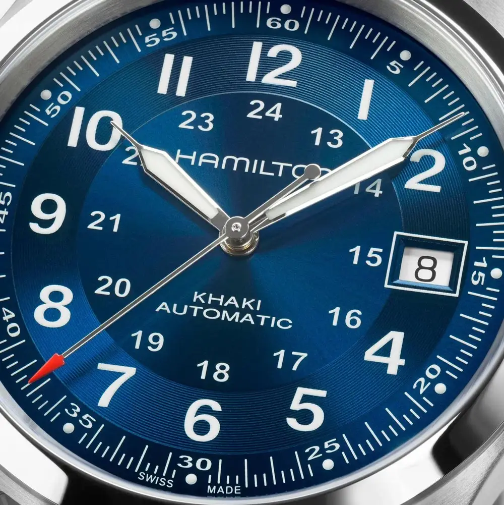 Khaki Field là một trong những bộ sưu tập biểu tượng nhất của Hamilton, lấy cảm hứng từ di sản quân sự phong phú của thương hiệu. Được thiết kế dựa trên những mẫu đồng hồ dành cho lính Mỹ từ giữa thế kỷ 20, bộ sưu tập này thể hiện sự bền bỉ, tính năng thực dụng và khả năng đọc giờ dễ dàng - những giá trị quan trọng trên chiến trường và trong cuộc sống hàng ngày.