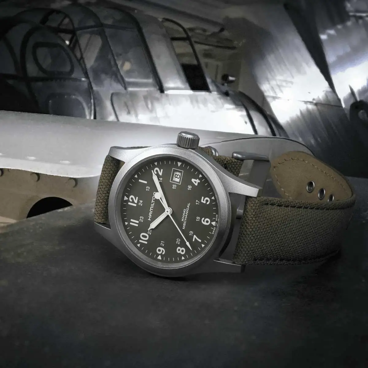 Khaki Field là một trong những bộ sưu tập biểu tượng nhất của Hamilton, lấy cảm hứng từ di sản quân sự phong phú của thương hiệu. Được thiết kế dựa trên những mẫu đồng hồ dành cho lính Mỹ từ giữa thế kỷ 20, bộ sưu tập này thể hiện sự bền bỉ, tính năng thực dụng và khả năng đọc giờ dễ dàng - những giá trị quan trọng trên chiến trường và trong cuộc sống hàng ngày.