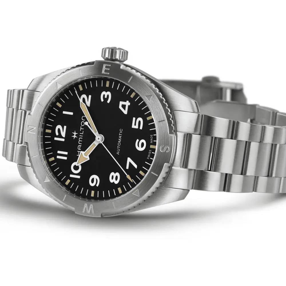 Khaki Field là một trong những bộ sưu tập biểu tượng nhất của Hamilton, lấy cảm hứng từ di sản quân sự phong phú của thương hiệu. Được thiết kế dựa trên những mẫu đồng hồ dành cho lính Mỹ từ giữa thế kỷ 20, bộ sưu tập này thể hiện sự bền bỉ, tính năng thực dụng và khả năng đọc giờ dễ dàng - những giá trị quan trọng trên chiến trường và trong cuộc sống hàng ngày.