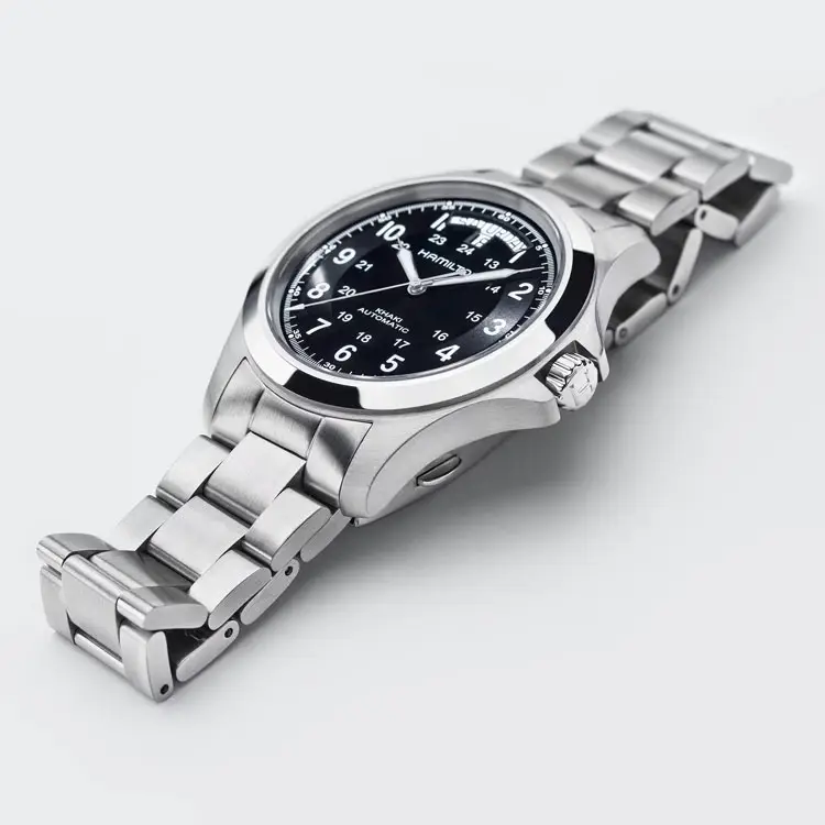 Khaki Field là một trong những bộ sưu tập biểu tượng nhất của Hamilton, lấy cảm hứng từ di sản quân sự phong phú của thương hiệu. Được thiết kế dựa trên những mẫu đồng hồ dành cho lính Mỹ từ giữa thế kỷ 20, bộ sưu tập này thể hiện sự bền bỉ, tính năng thực dụng và khả năng đọc giờ dễ dàng - những giá trị quan trọng trên chiến trường và trong cuộc sống hàng ngày.