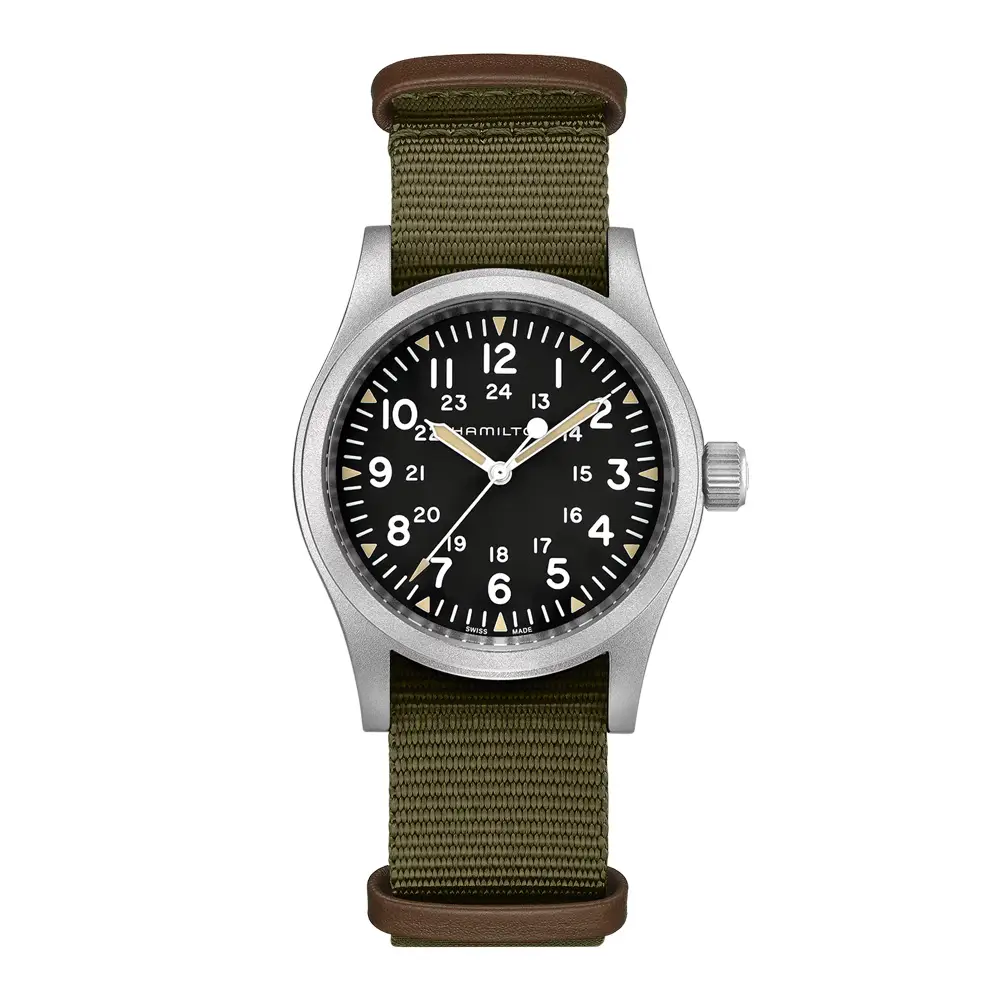 Khaki Field là một trong những bộ sưu tập biểu tượng nhất của Hamilton, lấy cảm hứng từ di sản quân sự phong phú của thương hiệu. Được thiết kế dựa trên những mẫu đồng hồ dành cho lính Mỹ từ giữa thế kỷ 20, bộ sưu tập này thể hiện sự bền bỉ, tính năng thực dụng và khả năng đọc giờ dễ dàng - những giá trị quan trọng trên chiến trường và trong cuộc sống hàng ngày.