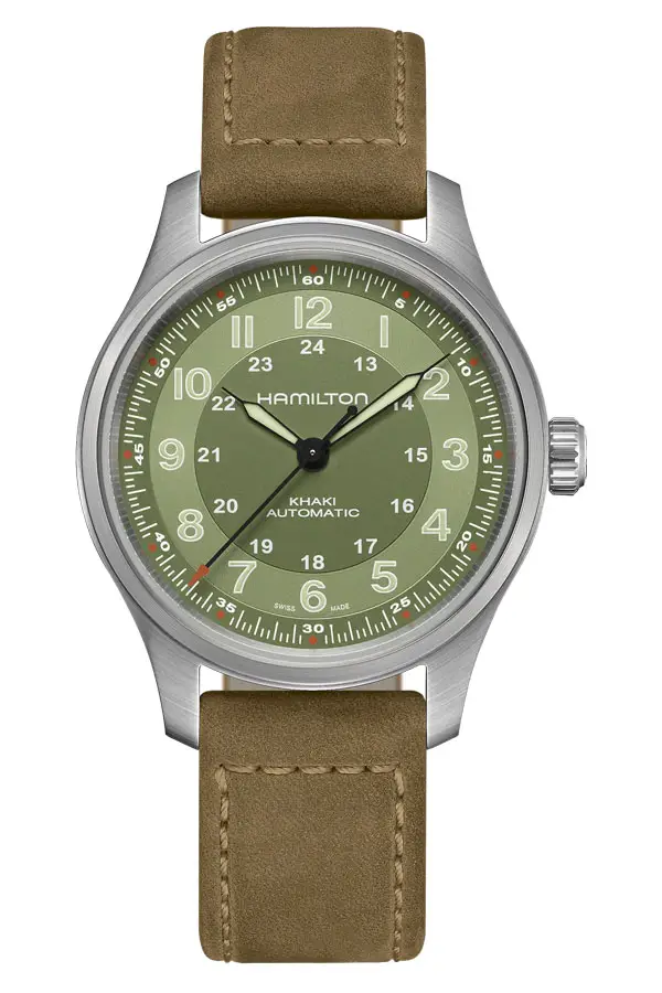 Khaki Field là một trong những bộ sưu tập biểu tượng nhất của Hamilton, lấy cảm hứng từ di sản quân sự phong phú của thương hiệu. Được thiết kế dựa trên những mẫu đồng hồ dành cho lính Mỹ từ giữa thế kỷ 20, bộ sưu tập này thể hiện sự bền bỉ, tính năng thực dụng và khả năng đọc giờ dễ dàng - những giá trị quan trọng trên chiến trường và trong cuộc sống hàng ngày.