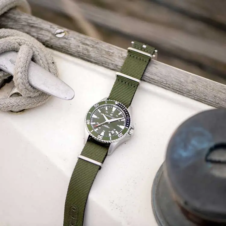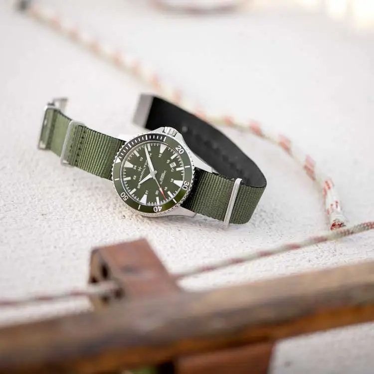 Khaki Navy là bộ sưu tập của Hamilton dành cho những người yêu thích thể thao nước, phiêu lưu và phong cách hàng hải. Lấy cảm hứng từ truyền thống đồng hồ hàng hải của Hamilton, bộ sưu tập này kết hợp cấu trúc bền bỉ, khả năng chống nước cao và thiết kế độc đáo, phù hợp cả trên boong tàu và dưới nước.