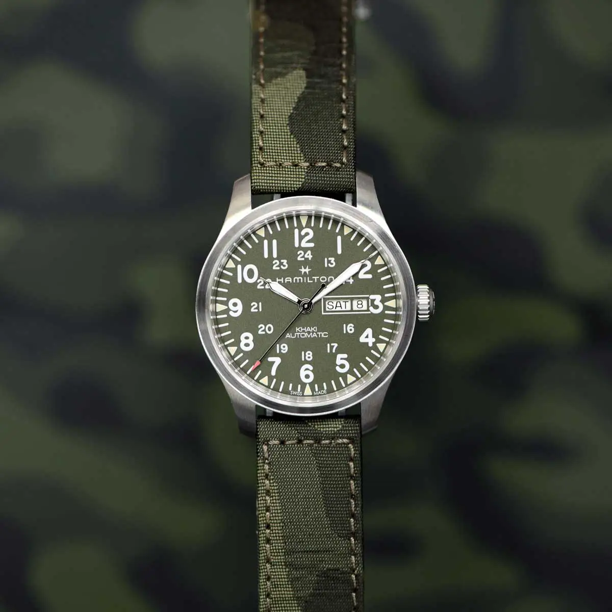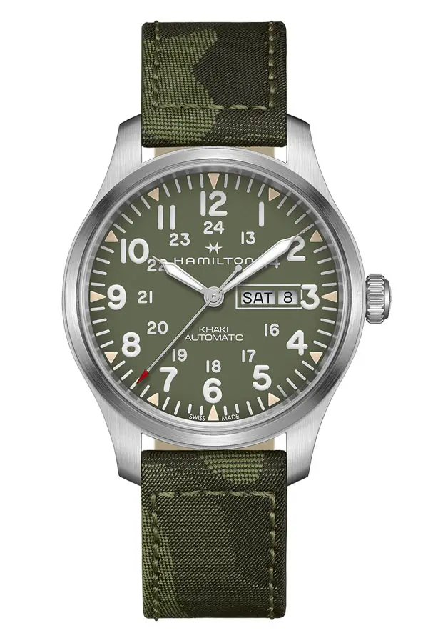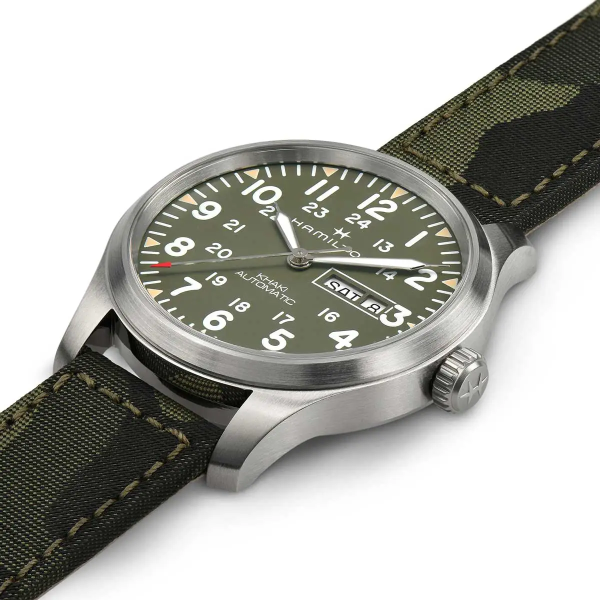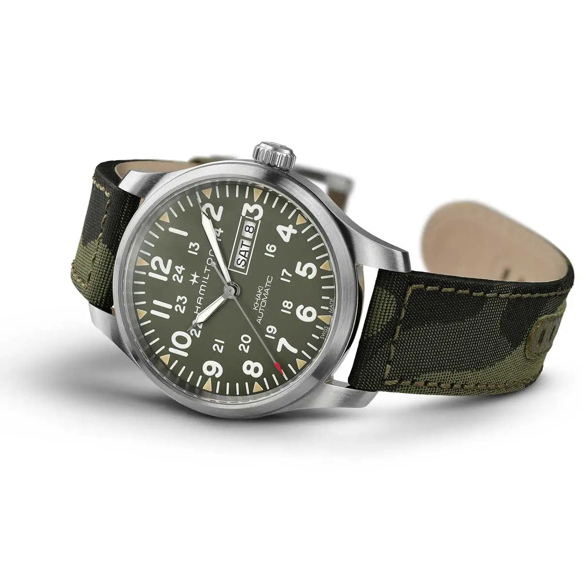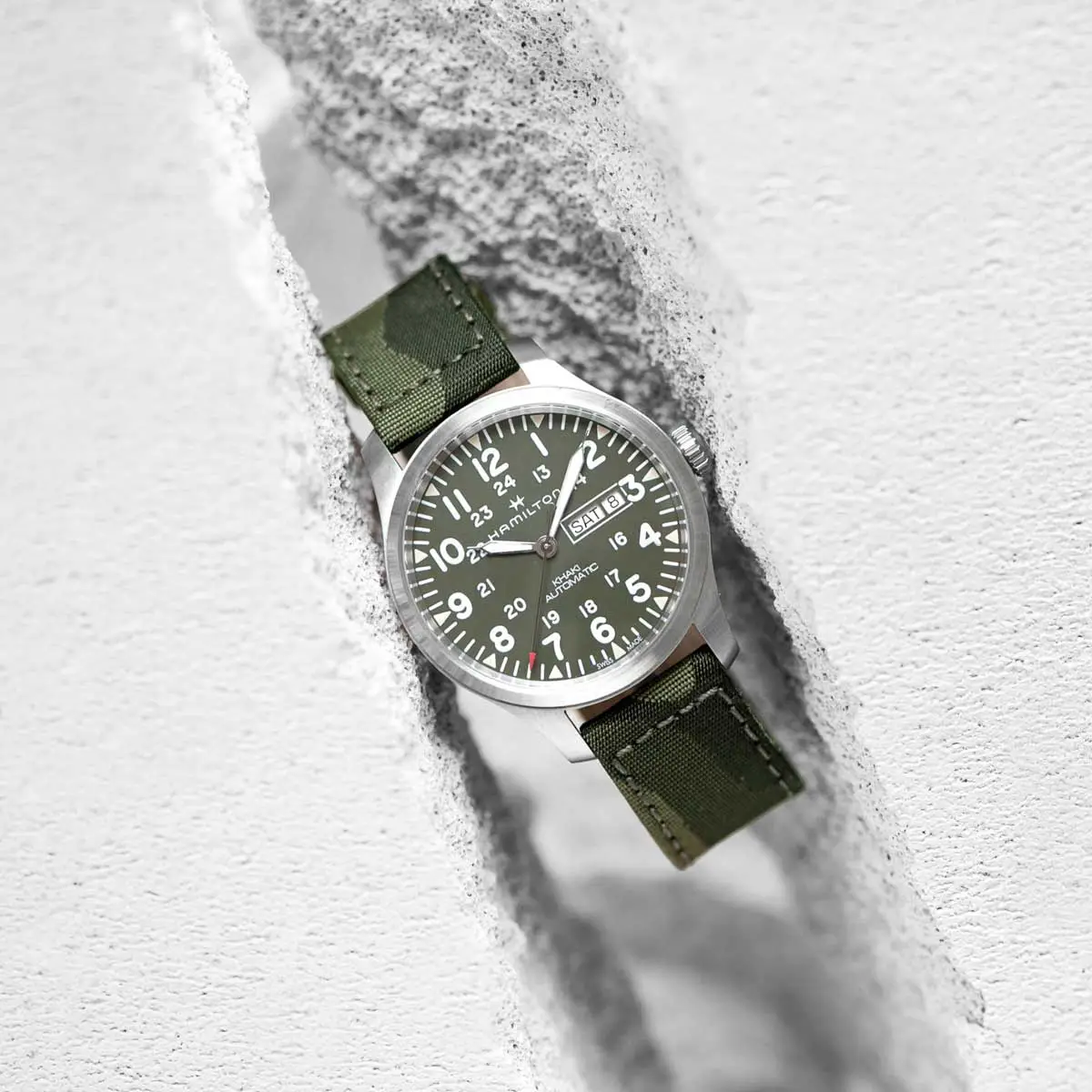 Khaki Field là một trong những bộ sưu tập biểu tượng nhất của Hamilton, lấy cảm hứng từ di sản quân sự phong phú của thương hiệu. Được thiết kế dựa trên những mẫu đồng hồ dành cho lính Mỹ từ giữa thế kỷ 20, bộ sưu tập này thể hiện sự bền bỉ, tính năng thực dụng và khả năng đọc giờ dễ dàng - những giá trị quan trọng trên chiến trường và trong cuộc sống hàng ngày.
