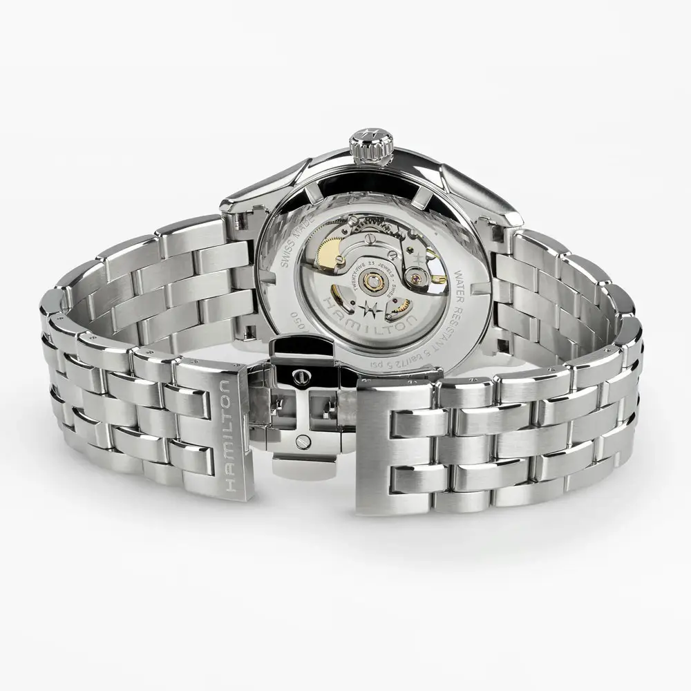Bộ sưu tập mang đến đa dạng mẫu mã - từ những phiên bản đơn giản với ba kim, đến đồng hồ bấm giờ, cho đến các mẫu có chức năng phức tạp như dự trữ năng lượng, mở tim hoặc điều chỉnh. Đồng hồ Jazzmaster có sẵn trong nhiều kích thước và chất liệu, với dây da hoặc dây thép, và luôn được trang bị bộ máy cơ học Thụy Sĩ đáng tin cậy.