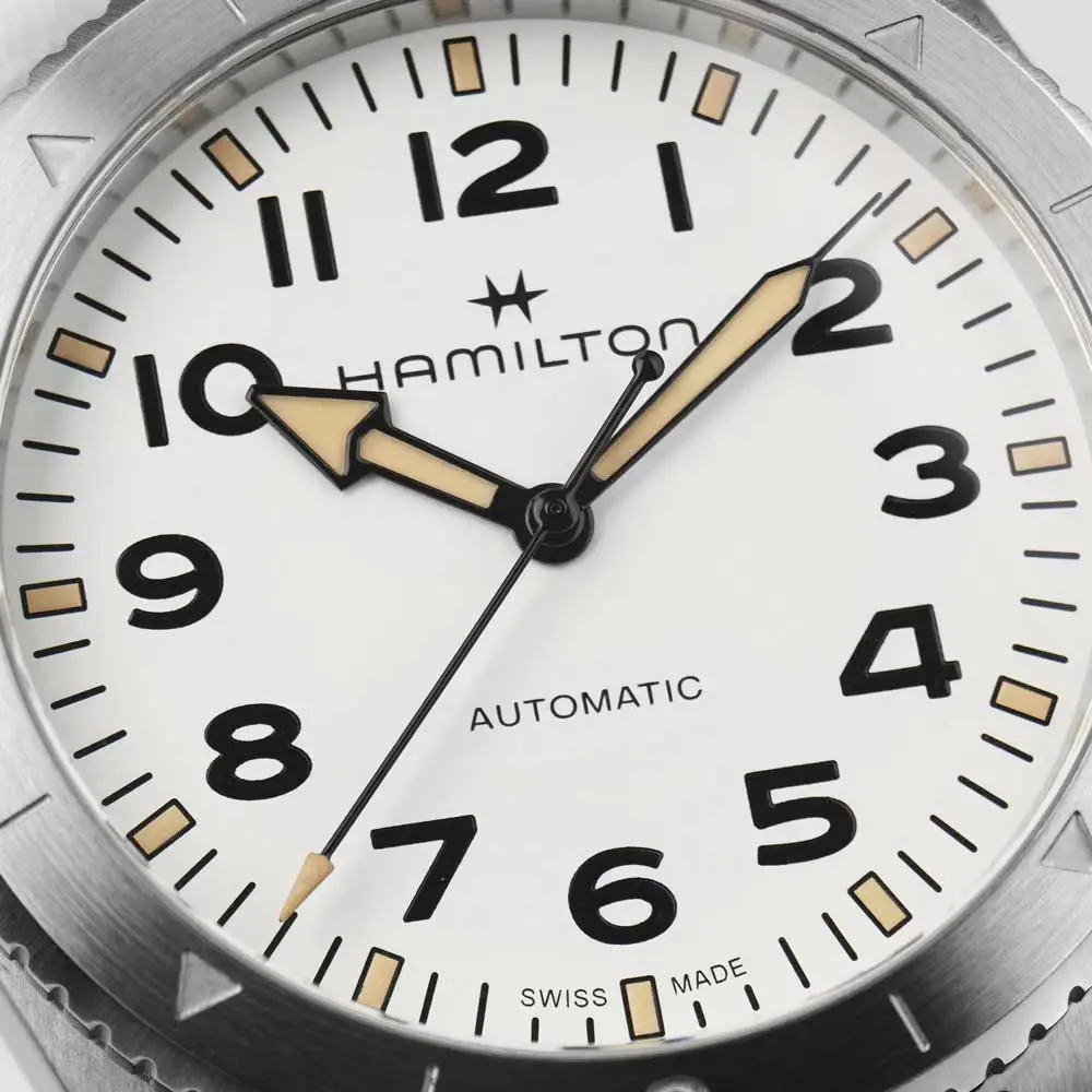 Khaki Field là một trong những bộ sưu tập biểu tượng nhất của Hamilton, lấy cảm hứng từ di sản quân sự phong phú của thương hiệu. Được thiết kế dựa trên những mẫu đồng hồ dành cho lính Mỹ từ giữa thế kỷ 20, bộ sưu tập này thể hiện sự bền bỉ, tính năng thực dụng và khả năng đọc giờ dễ dàng - những giá trị quan trọng trên chiến trường và trong cuộc sống hàng ngày.