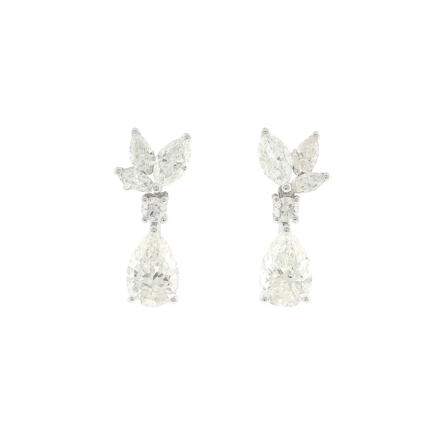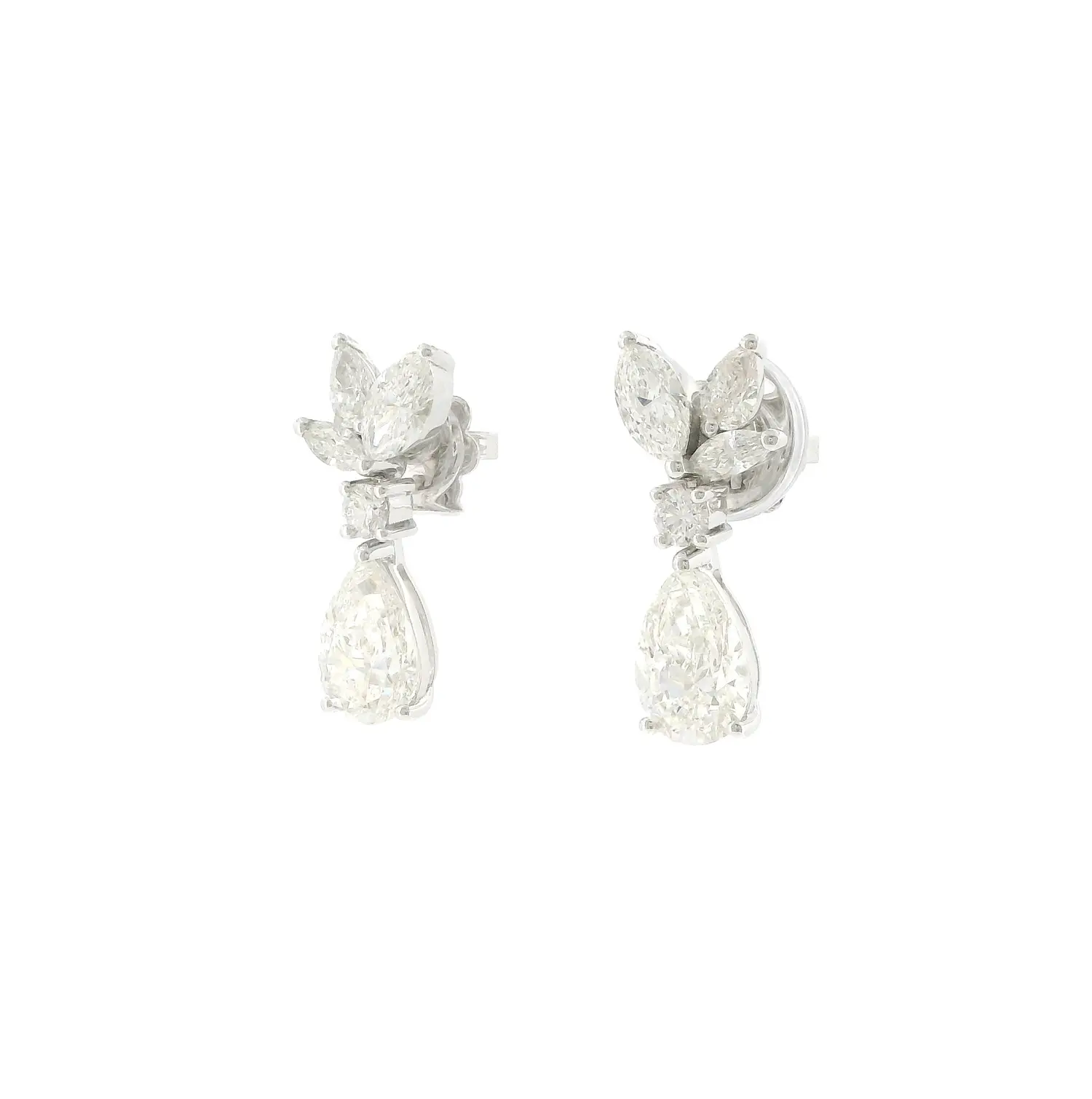 Hoa tai thả cao cấp với kim cương tự nhiên 2,02 ct bằng vàng trắng