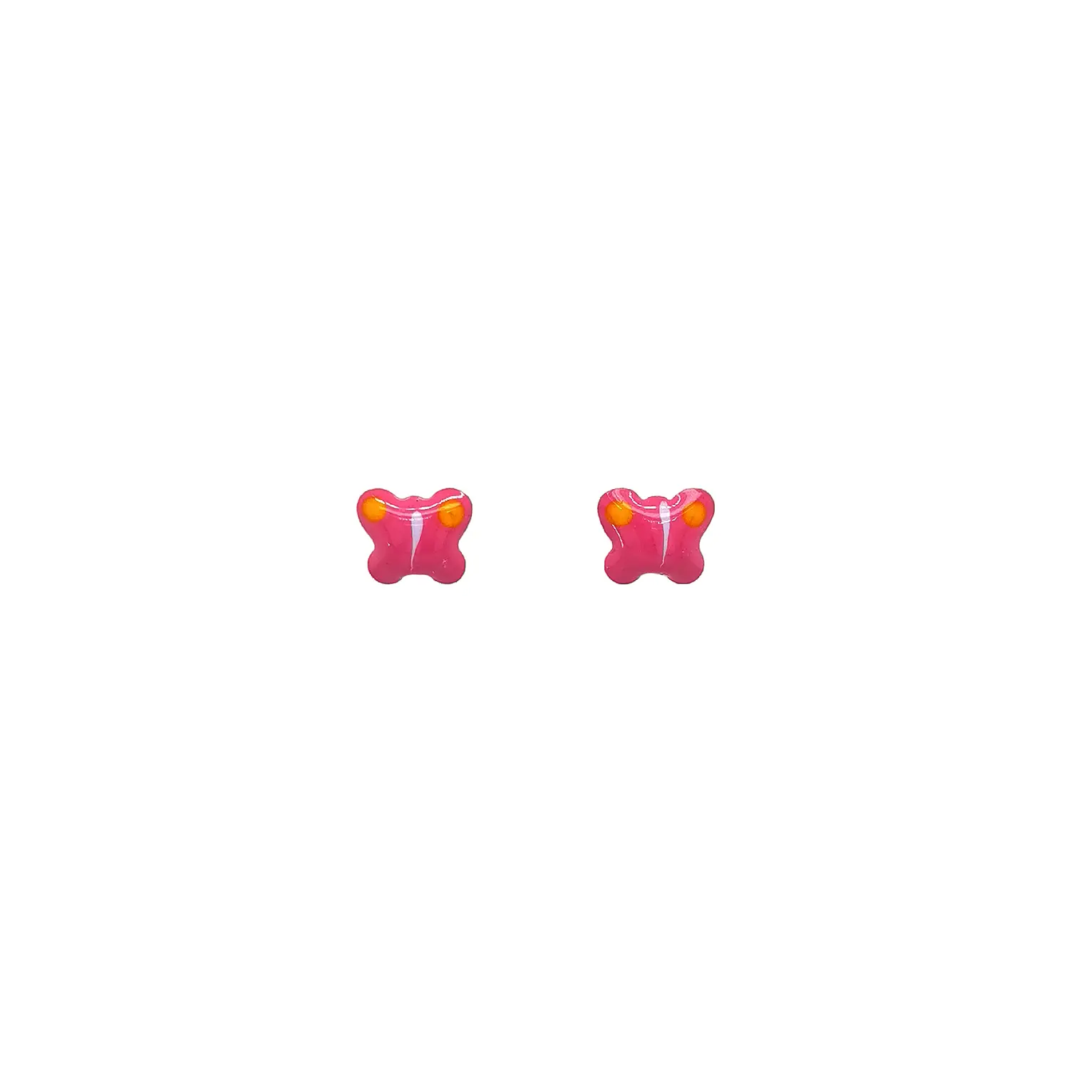 Đôi hoa tai trẻ em xinh xắn này được thiết kế theo hình con bướm, chế tác từ vàng chất lượng cao, an toàn và thoải mái cho cả những bé có làn da nhạy cảm. Men hồng kết hợp điểm nhấn màu cam tạo nên vẻ ngoài vui tươi, đáng yêu – chắc chắn sẽ khiến các bé gái thích thú.