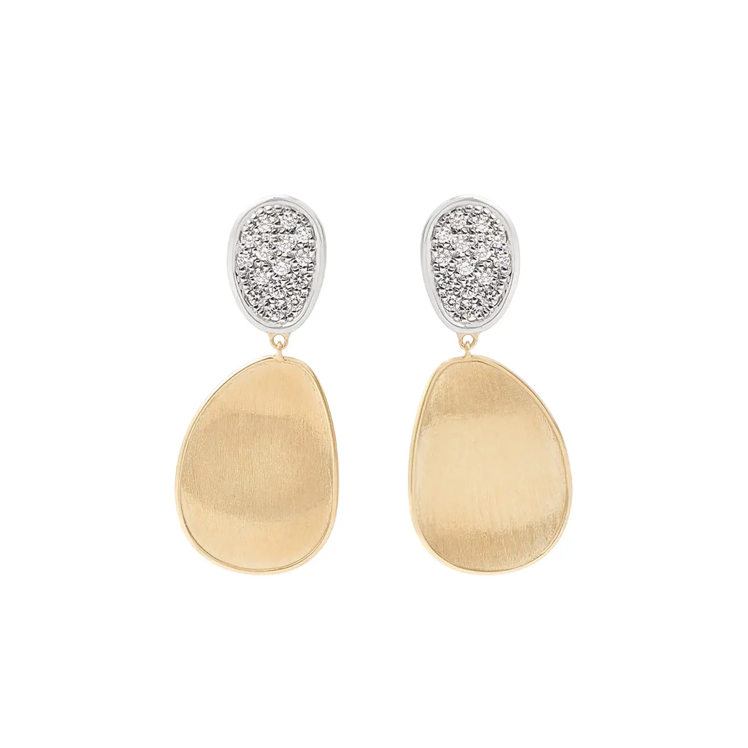 Những viên kim cương pavé tinh xảo mang đến vẻ lấp lánh sang trọng mà không làm mất đi nét tự nhiên hài hòa của thiết kế. Kim cương cắt sáng tổng trọng lượng khoảng 0,56 ct làm nổi bật các đường nét mềm mại của vàng và tạo nên ánh sáng tinh tế. Đây là sự kết hợp hoàn hảo giữa đường nét tự nhiên, tay nghề nghệ nhân và vẻ đẹp thanh lịch vượt thời gian của Marco Bicego.