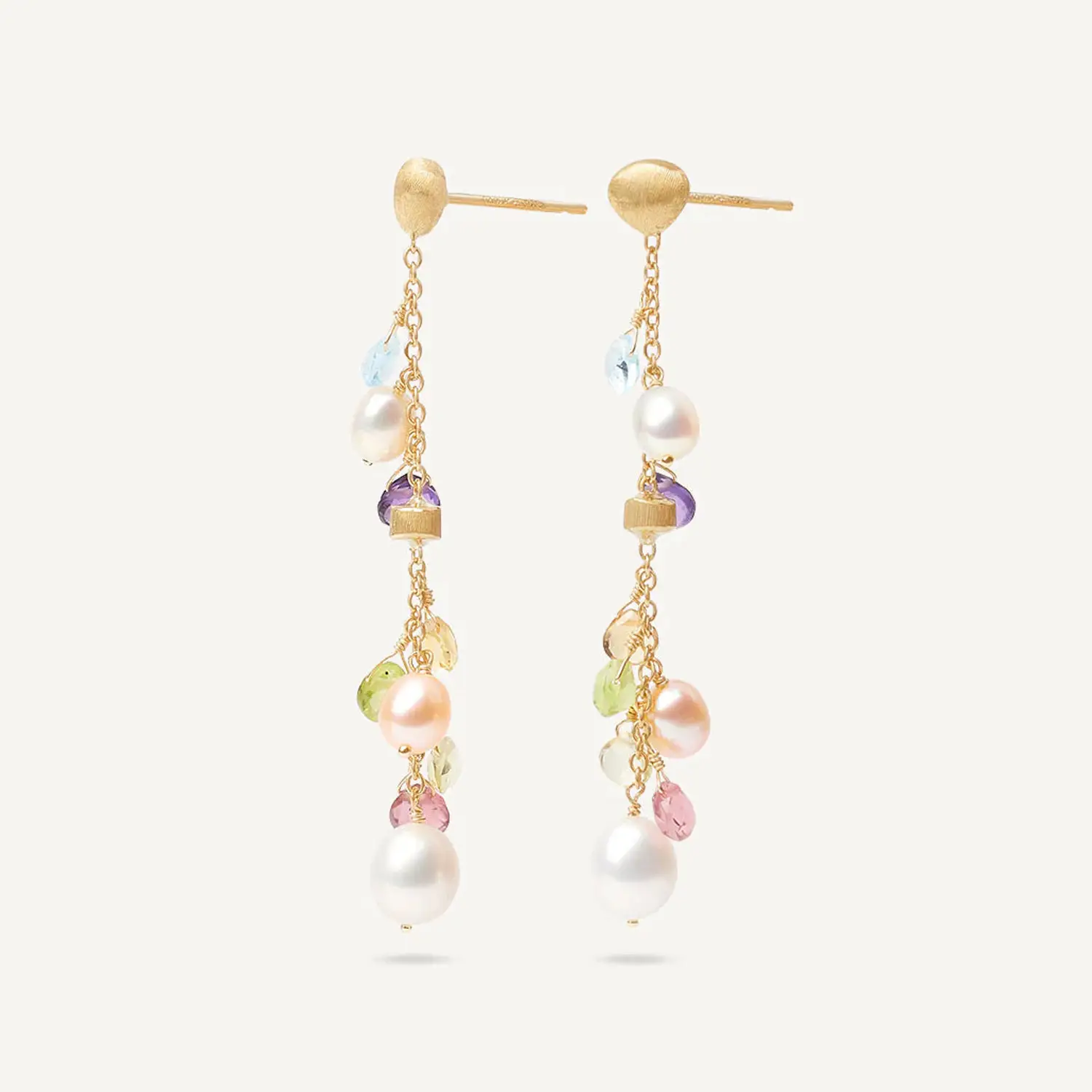 Đôi hoa tai vàng Marco Bicego OB1779 MIX114 Y được chế tác từ vàng vàng 18K (750/1000) và thuộc bộ sưu tập Paradise, nổi tiếng với sự kết hợp của nhiều loại đá quý tự nhiên đầy màu sắc. Bộ sưu tập được lấy cảm hứng từ ánh sáng và màu sắc của vùng Địa Trung Hải.