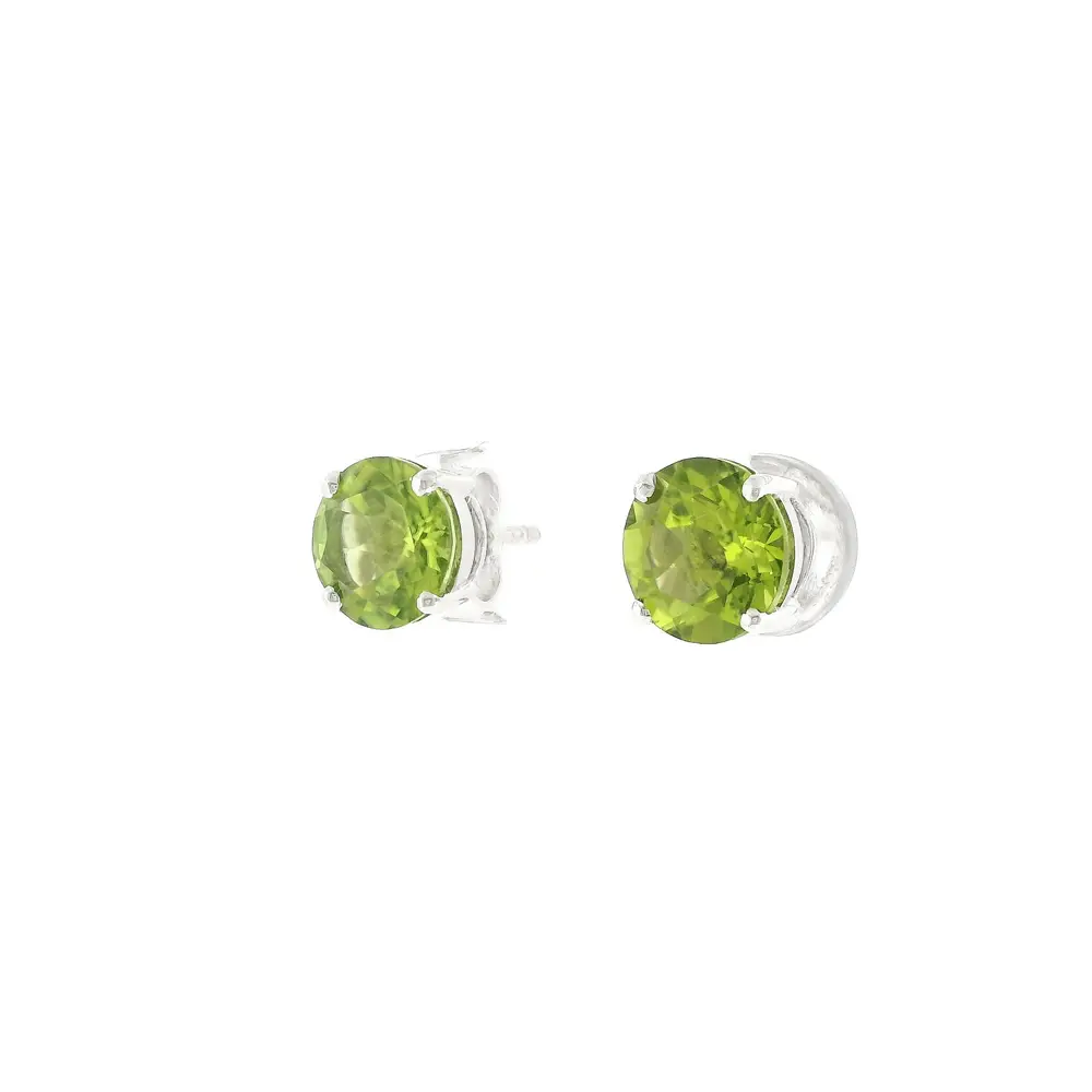 Hoa tai gắn peridot gây ấn tượng với sắc xanh tươi sáng và thiết kế vượt thời gian. Điểm nổi bật của món trang sức là peridot tự nhiên tổng trọng lượng 3,80 ct, với màu xanh rực rỡ mang lại vẻ đẹp nổi bật nhưng vẫn tinh tế. Kiểu gắn solitaire cổ điển giúp ánh sáng đi vào viên đá từ nhiều phía, làm tăng độ lấp lánh tự nhiên.