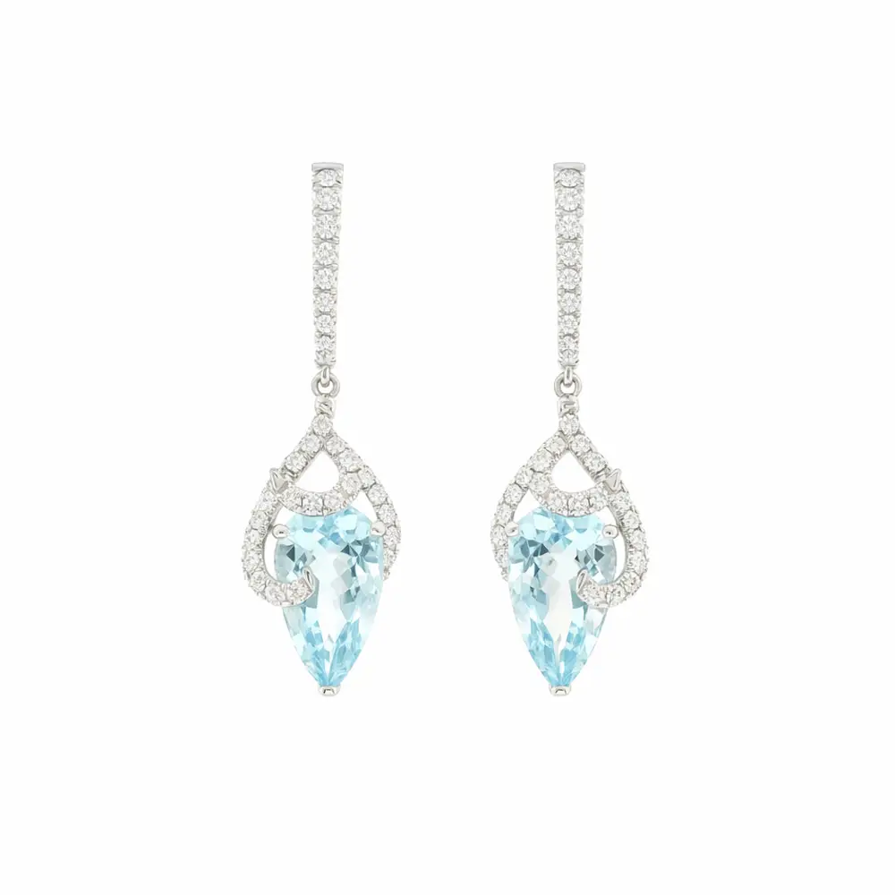 Hoa tai vàng trắng với đá aquamarine và kim cương