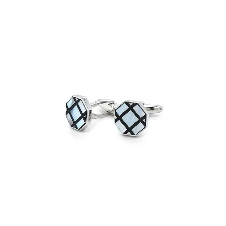 Khuy măng sét vàng trắng với ngọc trai