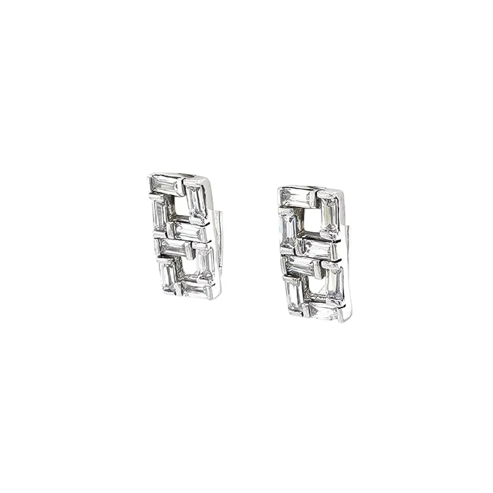 Khuyên tai bằng vàng trắng đính đá zircon trắng