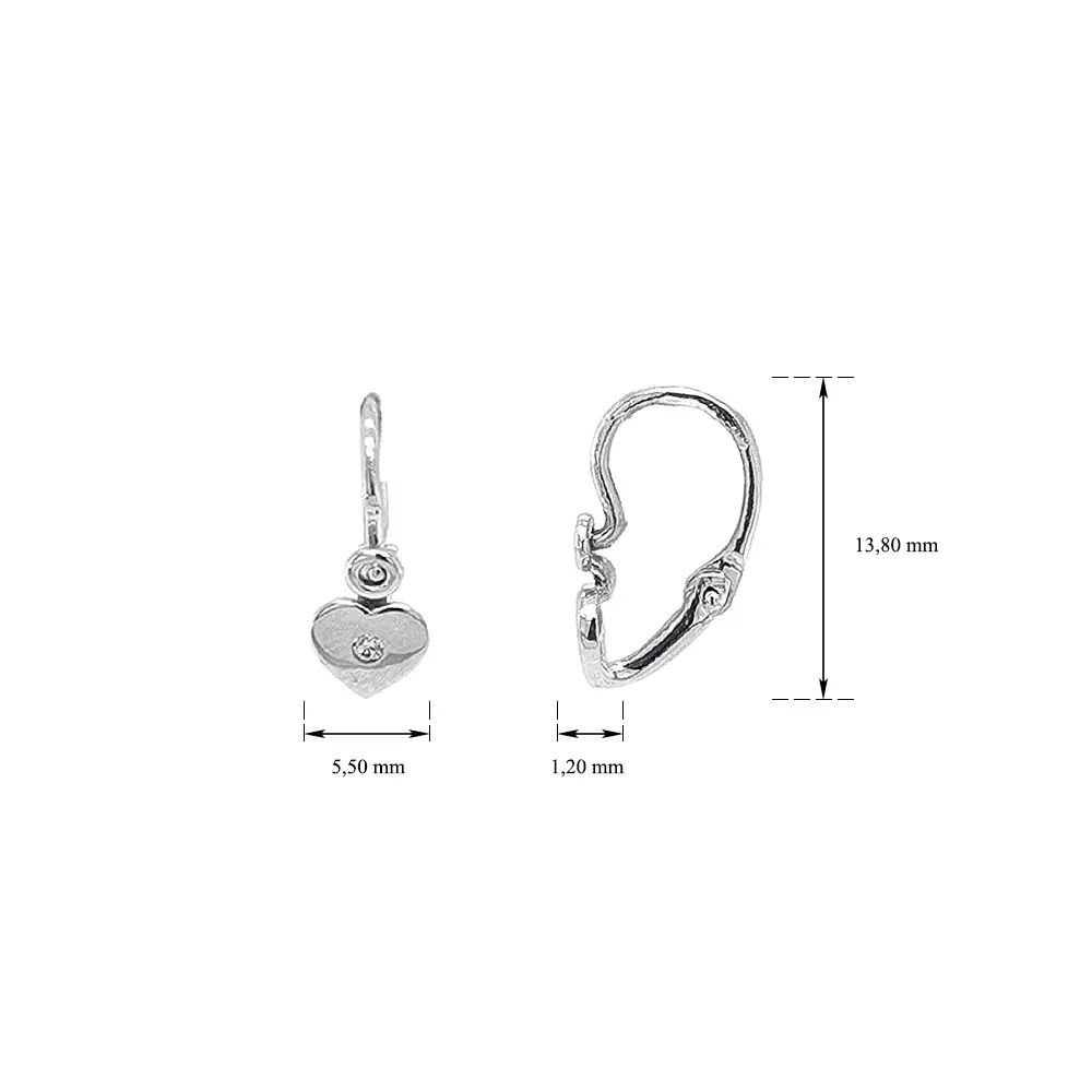 Khuyên tai hình trái tim cho trẻ em với đá zircon