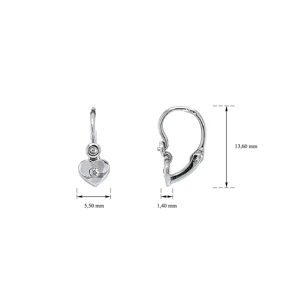 Khuyên tai hình trái tim cho trẻ em với đá zircon