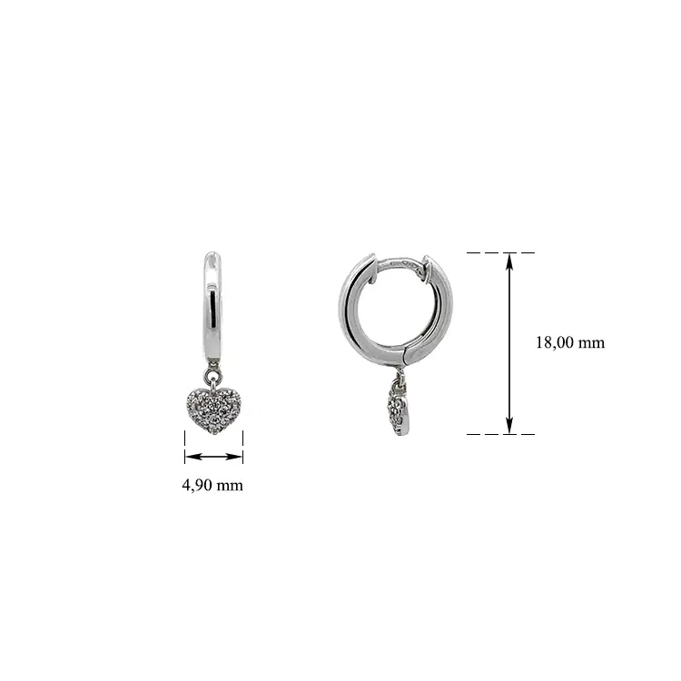 Khuyên tai hình trái tim với đá zircon trắng vàng