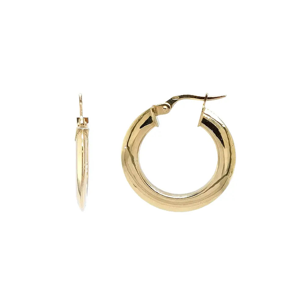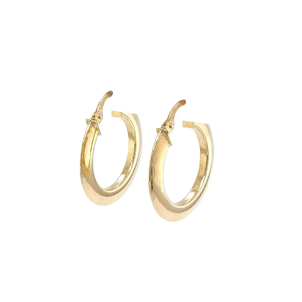 Khuyên tai tròn phẳng bằng vàng vàng với khóa thanh