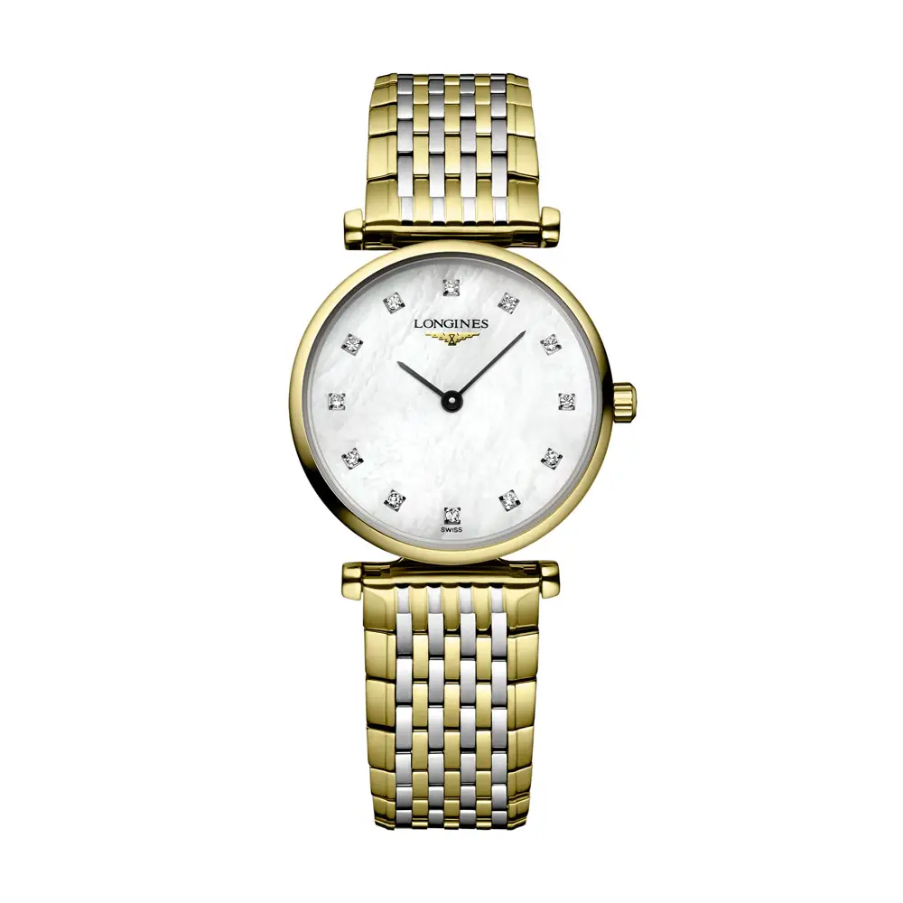 Bên trong là bộ máy quartz Thụy Sĩ L209 chính xác, đảm bảo độ tin cậy cao. Hoàn thiện với dây thép phủ PVD vàng cùng khóa gập ba lần an toàn, đồng hồ vừa thanh lịch vừa thoải mái. Đây là chiếc đồng hồ thể hiện trọn vẹn tinh thần Longines – truyền thống, nét đẹp nữ tính và sự tinh tế trong từng chi tiết.