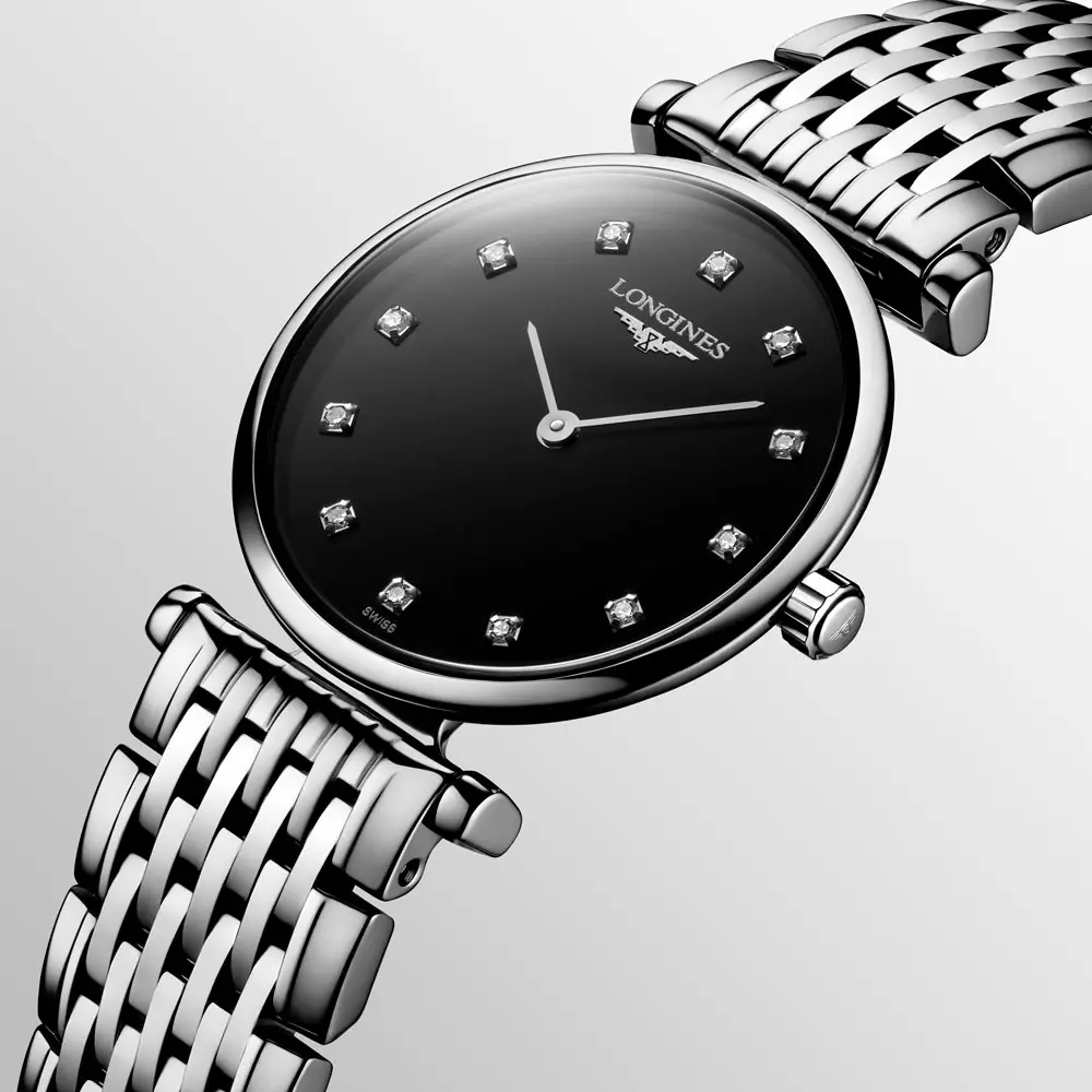 Bên trong là bộ máy quartz L209 chính xác, không cần lên cót. Khả năng chống nước 30 m (3 ATM) cùng khóa gập ẩn mang lại sự tinh tế, thể hiện đẳng cấp của bộ sưu tập La Grande Classique de Longines.