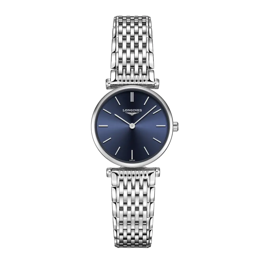 Longines La Grande Classique L4.209.4.95.6 là mẫu đồng hồ nữ quartz, thể hiện hoàn hảo sự thanh lịch và tối giản. Vỏ thép không gỉ 24 mm mỏng nhẹ, đi kèm kính sapphire chống trầy.