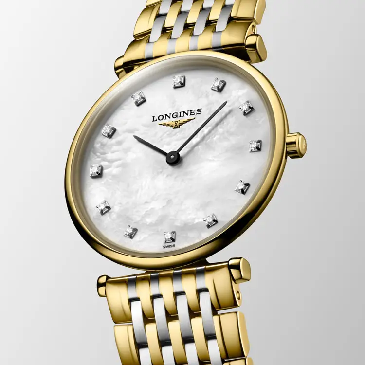 Bên trong là bộ máy quartz Thụy Sĩ L420 chính xác, đảm bảo độ tin cậy và dễ sử dụng. Mẫu đồng hồ hoàn thiện với dây thép phủ PVD vàng cùng khóa gập ba lần an toàn, mang đến sự thoải mái và sang trọng. Đây là chiếc đồng hồ thể hiện trọn vẹn tinh thần Longines – truyền thống, nữ tính và vẻ đẹp vượt thời gian.