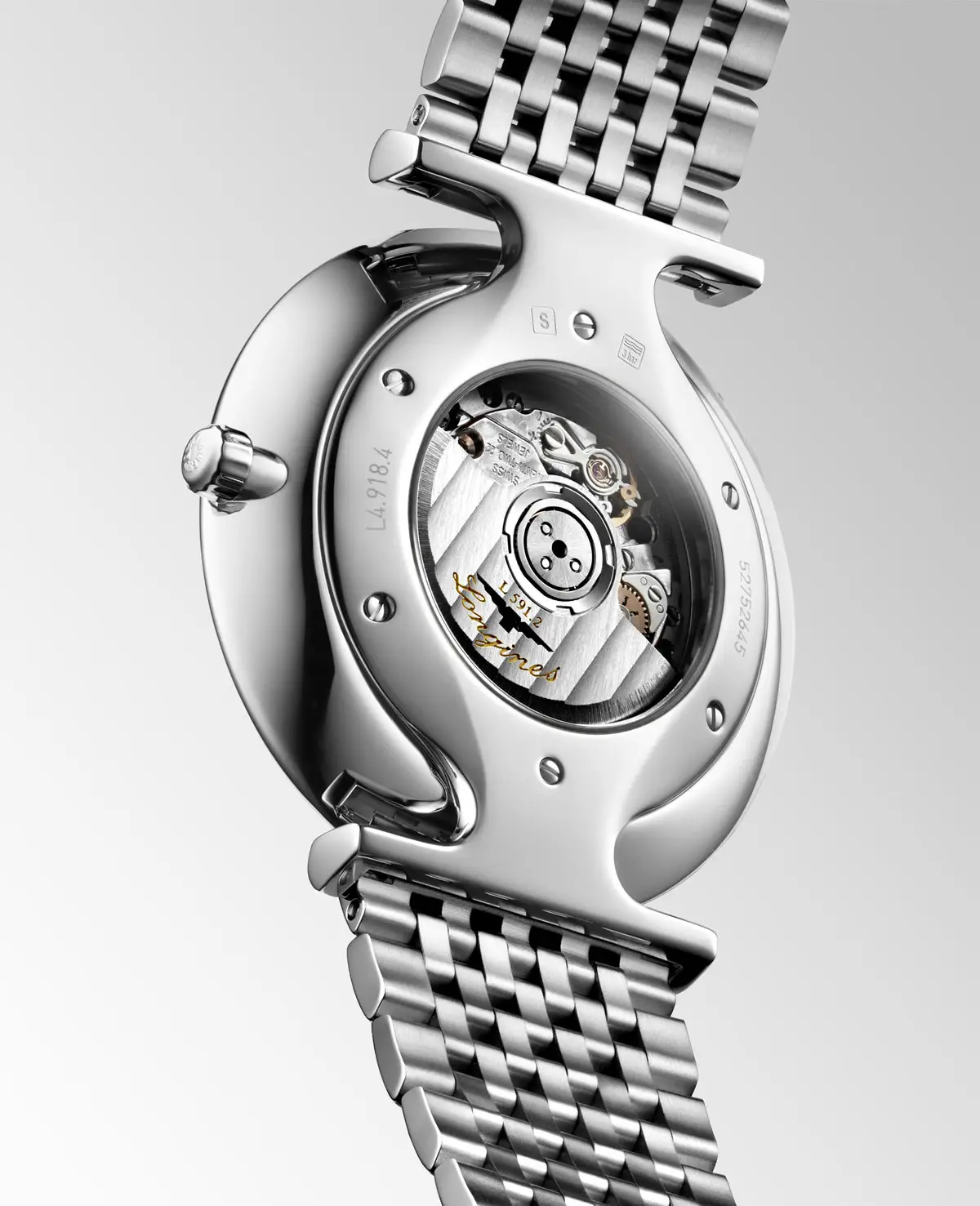 Bên trong là bộ máy automatic L591 với mức dự trữ năng lượng 45 giờ, khẳng định độ chính xác và độ tin cậy Thụy Sĩ. Mẫu đồng hồ hoàn thiện với dây thép không gỉ cùng khóa gập tích hợp, mang đến sự thoải mái và chắc chắn. Đây là chiếc đồng hồ thể hiện trọn vẹn tinh thần Longines – truyền thống, thanh lịch và tay nghề kỹ thuật bậc thầy.