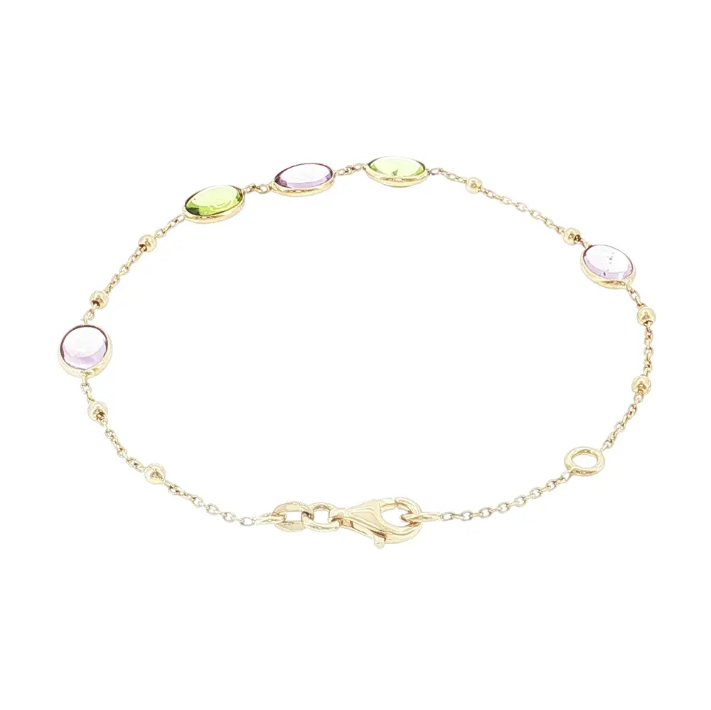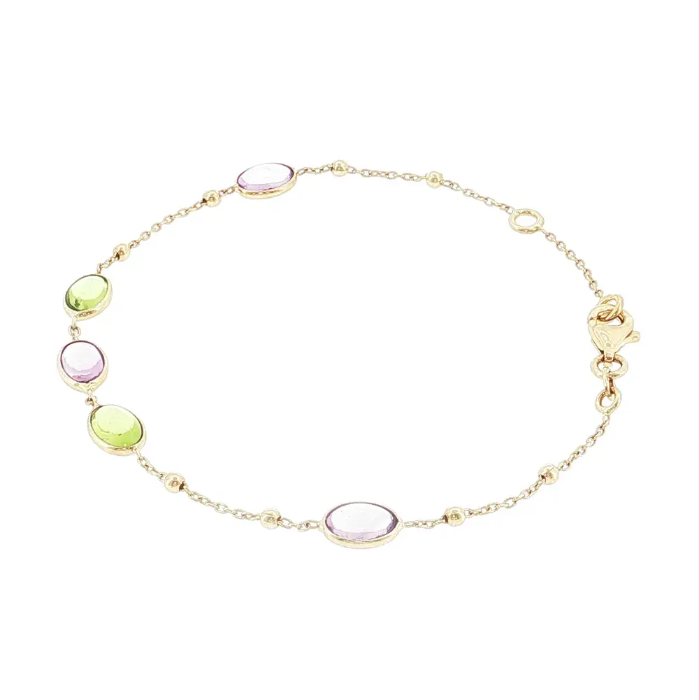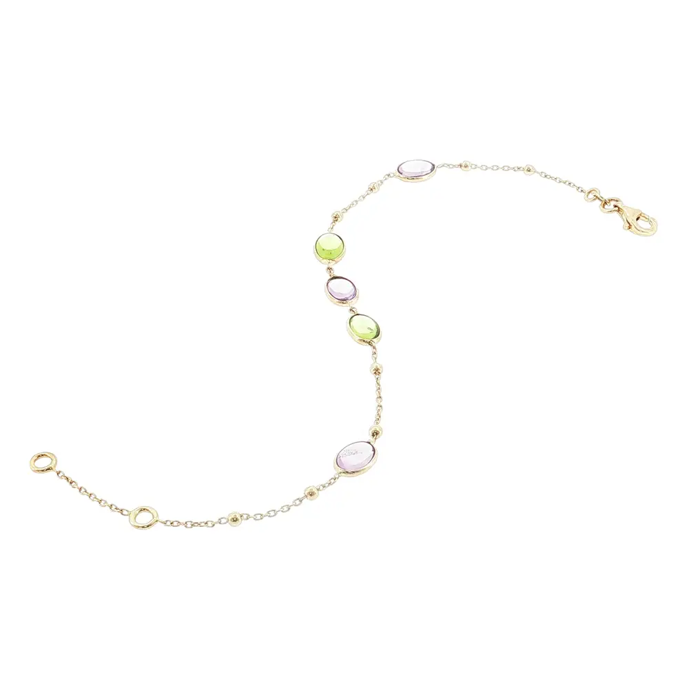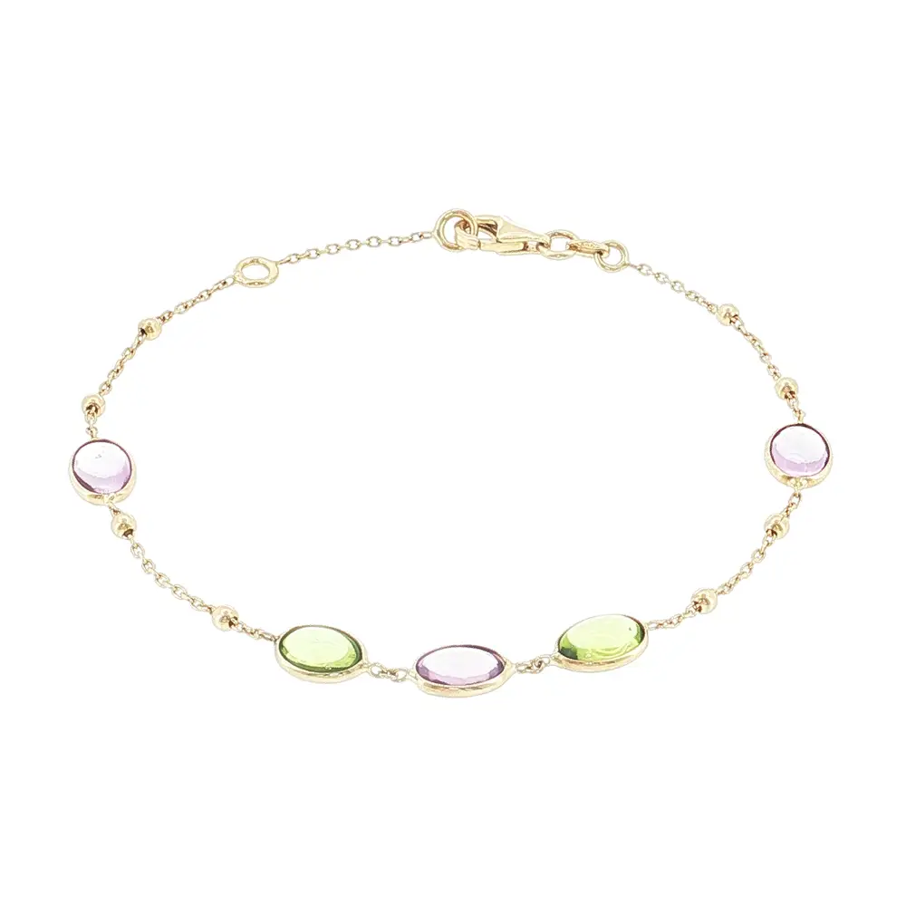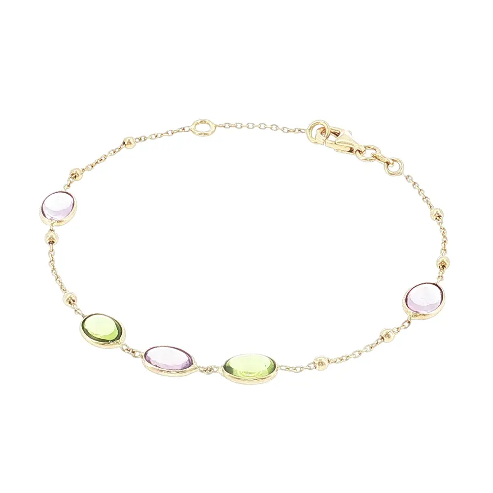 Lắc tay vàng 14K với đá màu và hạt vàng